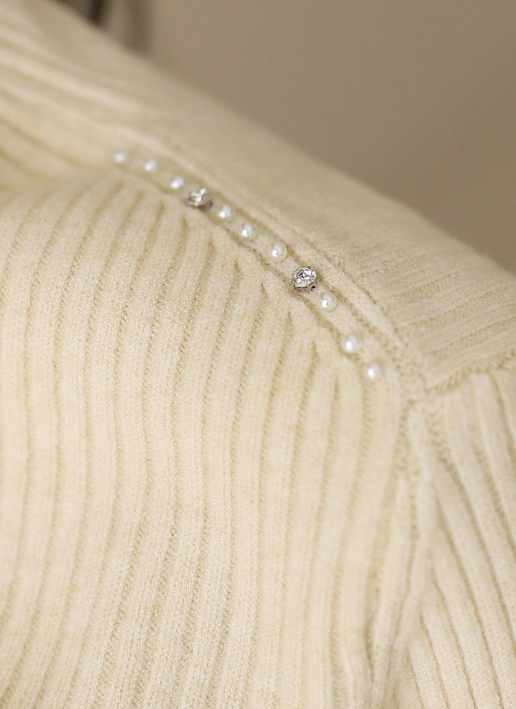 스타일에 은은한 화사함을 더해주는 진주 포인트 골지 폴라 니트에요
