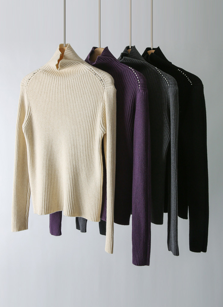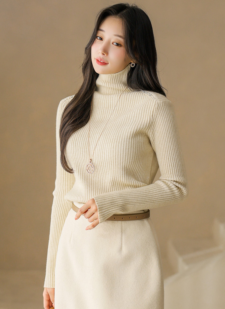 【4色展開】ショルダーパールビジュー付きタートルネックリブニット nt43900