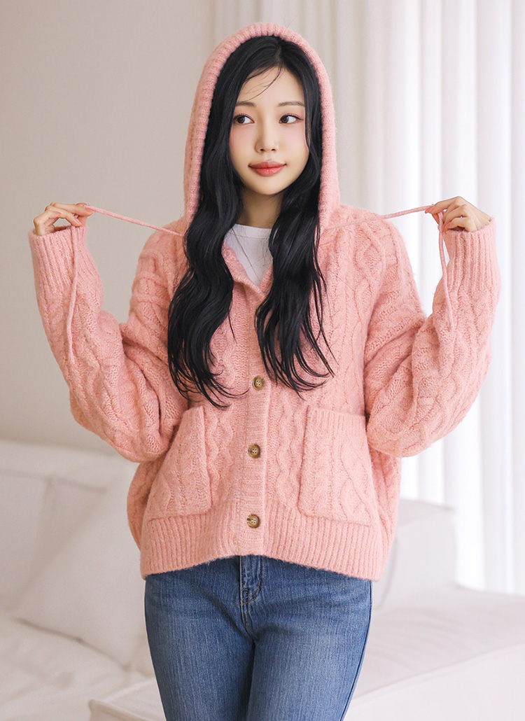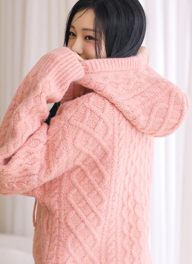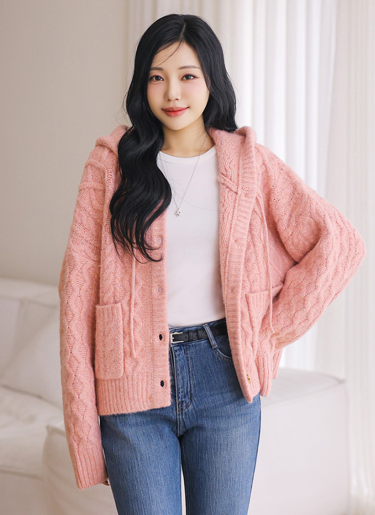 【5色展開】[THE ONME] フード付きケーブルニットカーディガン cd43984