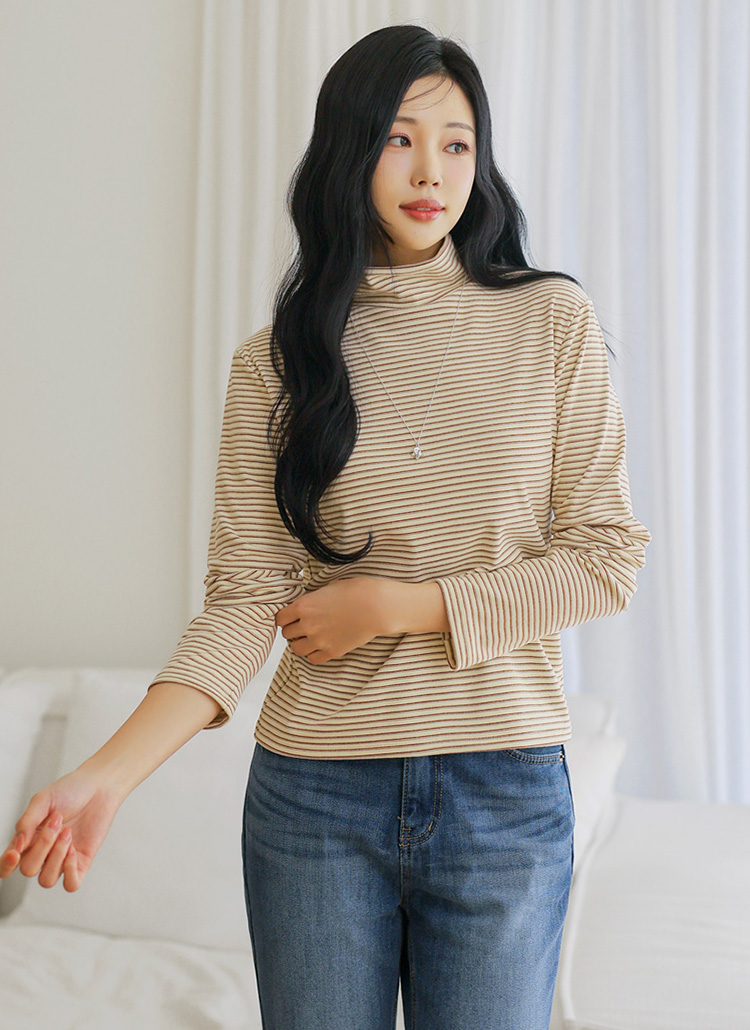 데일리로 즐기기 좋은 스트라이프 폴라 티셔츠에요 :)