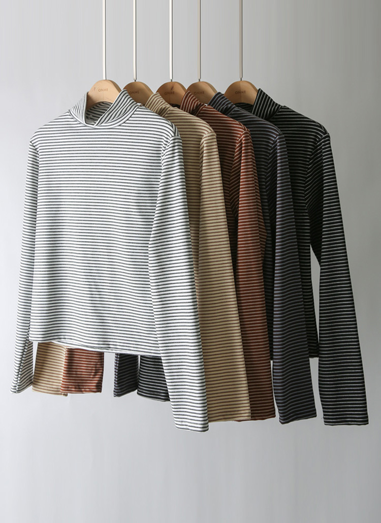 【5色展開】[THE ONME] マルチボーダータートルネックTシャツ ts44005