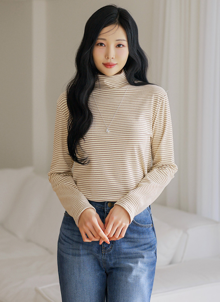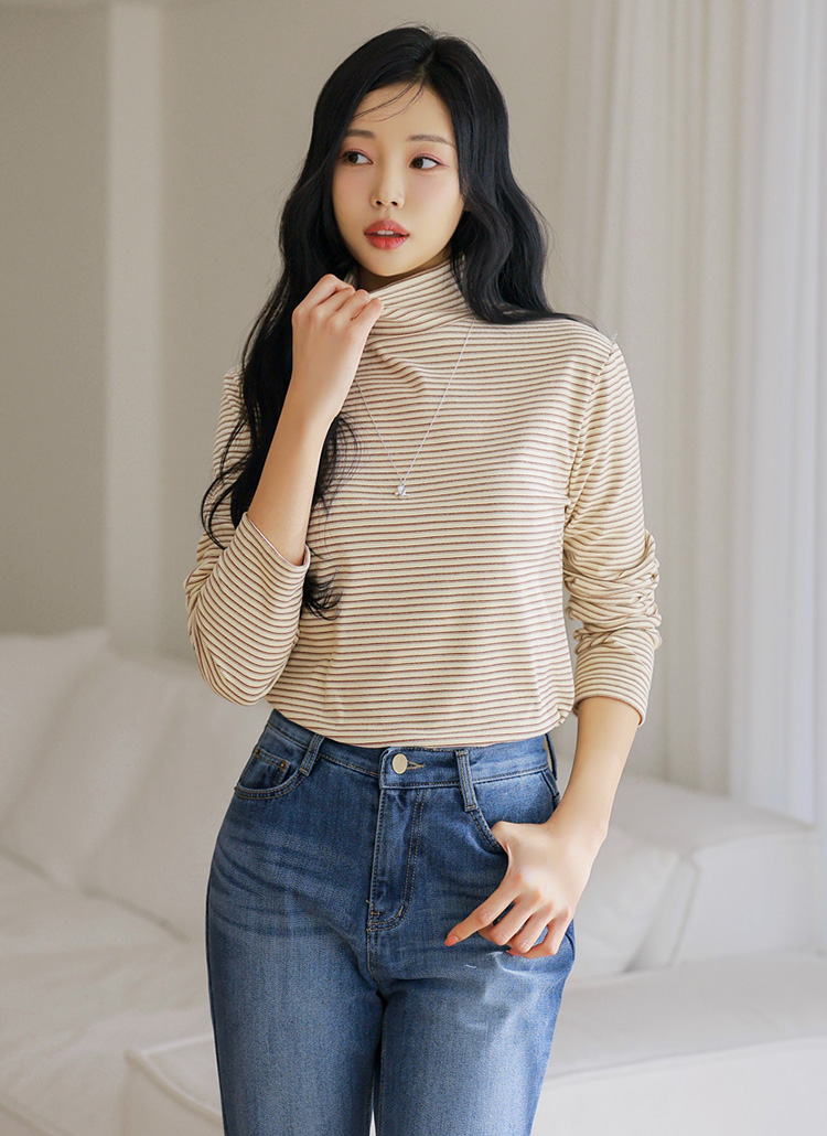 데일리로 즐기기 좋은 스트라이프 폴라 티셔츠에요 :)
