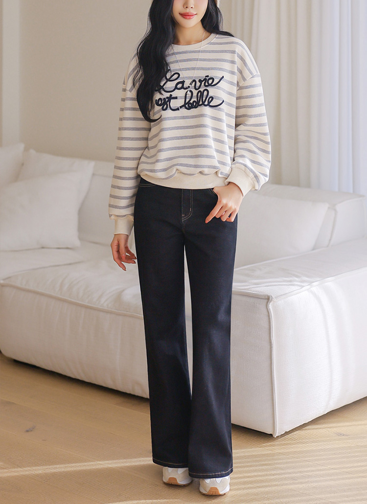 [THE ONME] レタリング刺繍ボーダースウェット ts44014