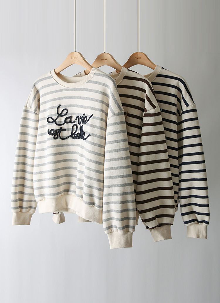 [THE ONME] レタリング刺繍ボーダースウェット ts44014