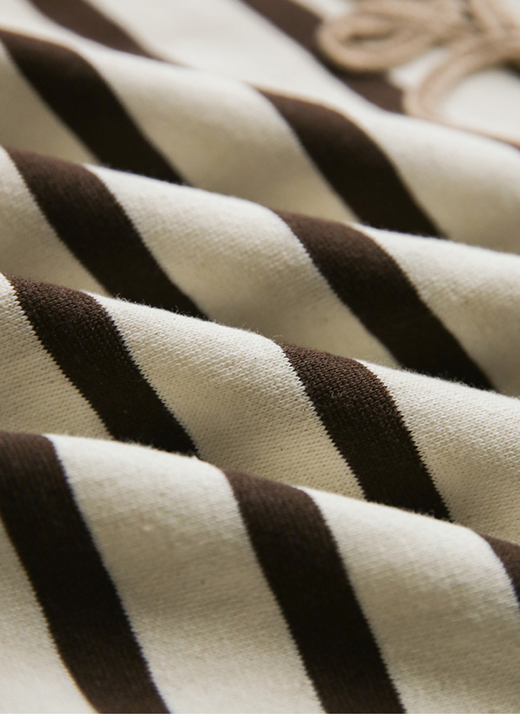 스트라이프 패턴 위에 더해진 레터링 자수 디테일로