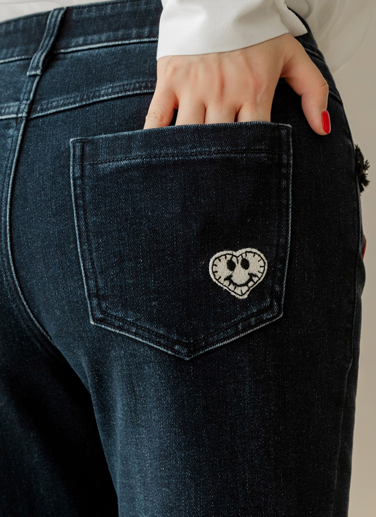 포근 속기모 일자 세미 와이드 데님 팬츠에요