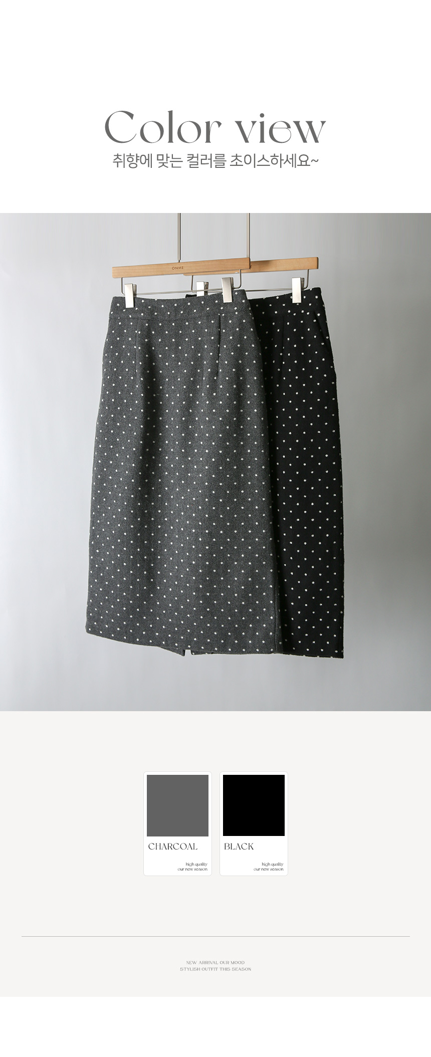 차분하면서도 여성스러운 무드가 돋보이는 스커트예요 :)