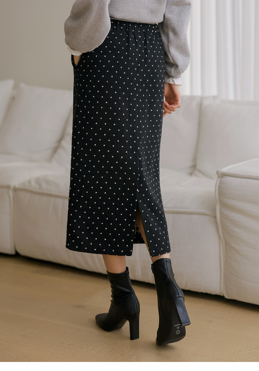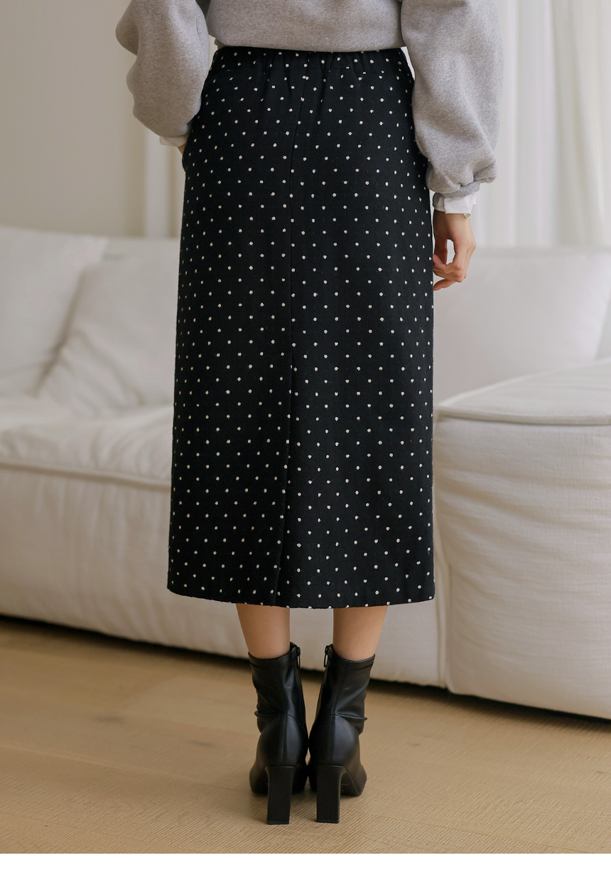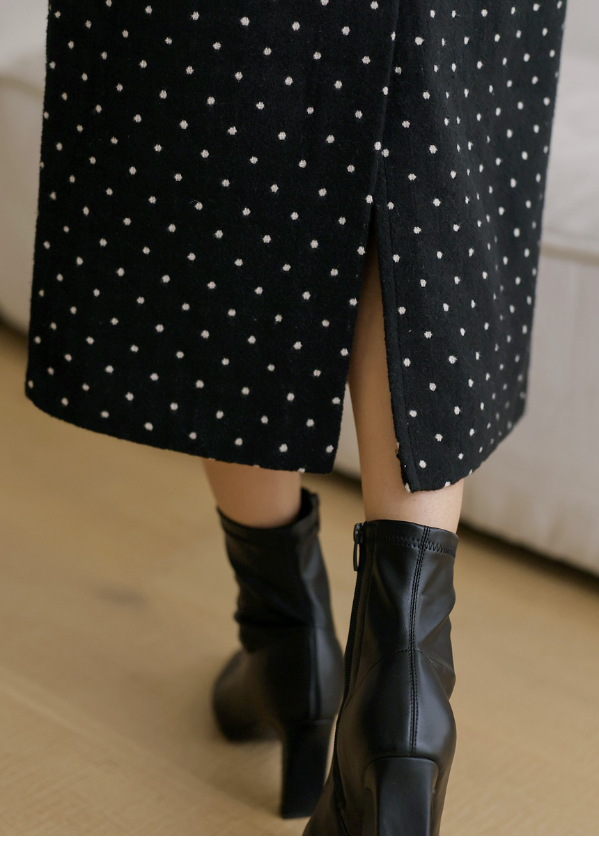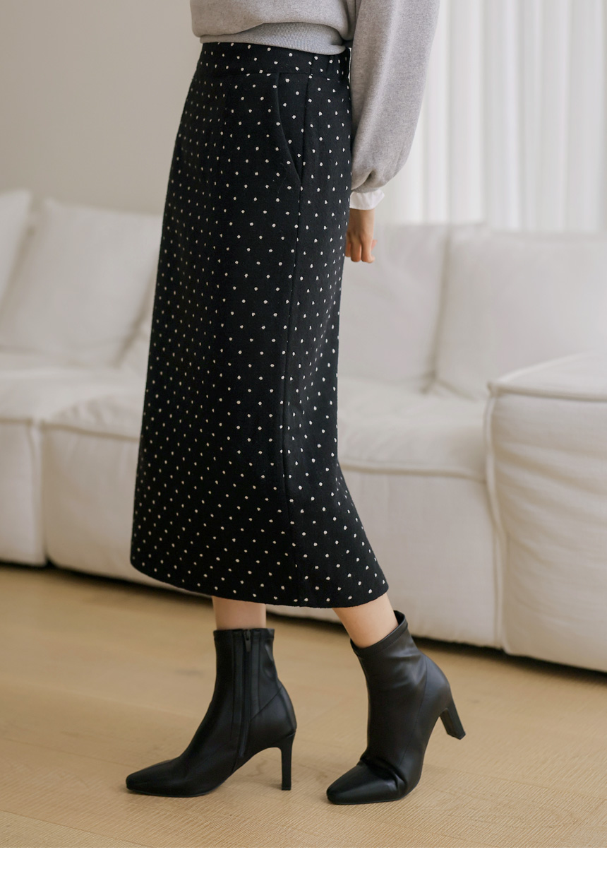 [THE ONME] ウールブレンド ドット柄 ロングペンシルスカート sk44029