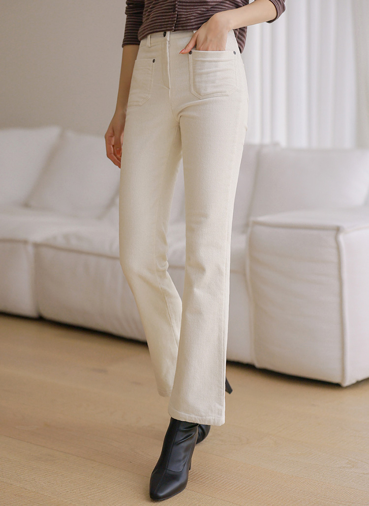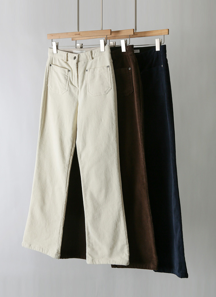 [THE ONME] フロントポケット細コーデュロイ裏起毛フレアコットンパンツ pt44035