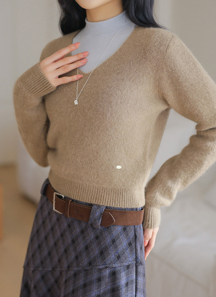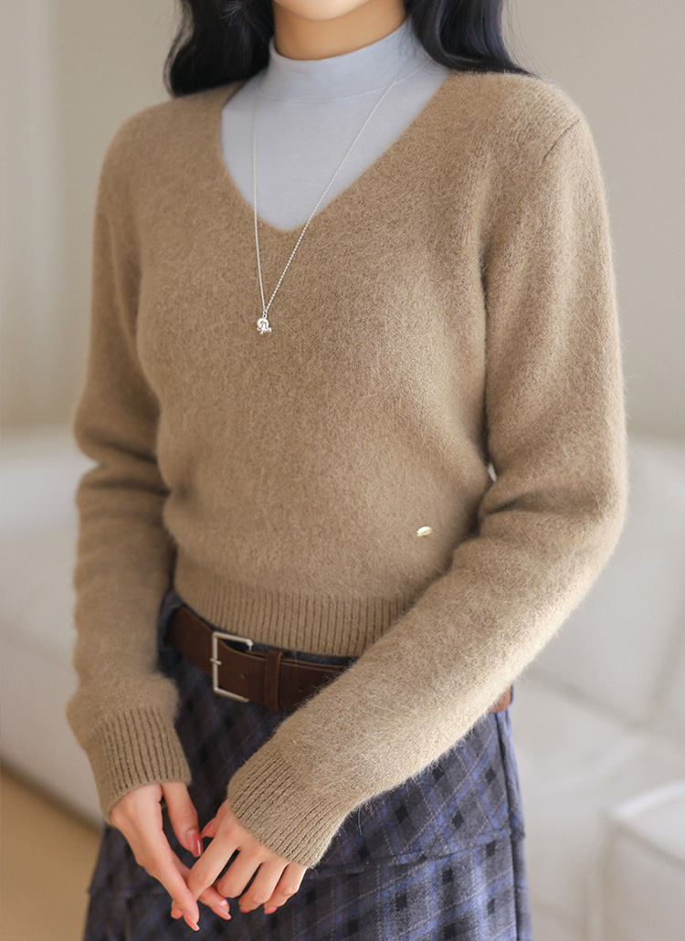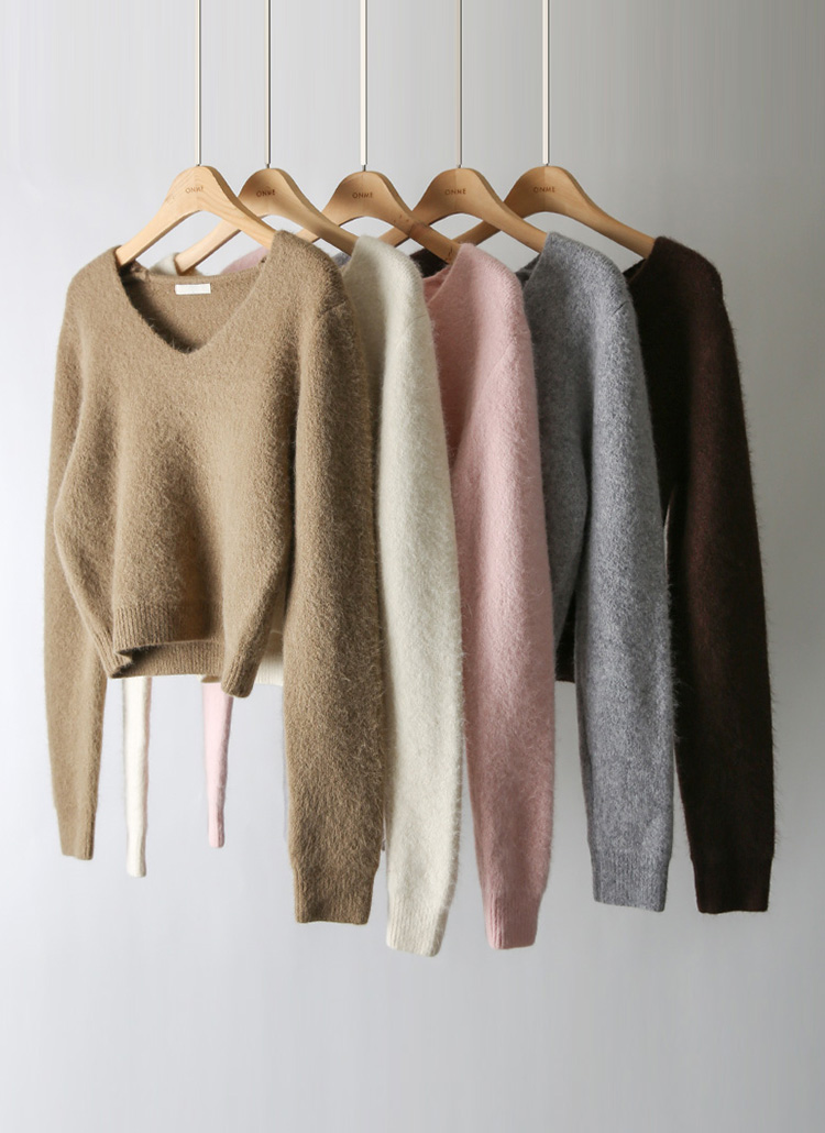 【5色展開】[THE ONME] ゴールドペンダント付き アンゴラ Vネックニット nt44044