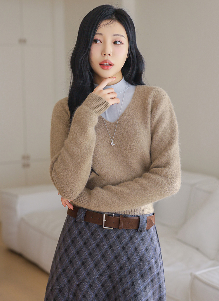 페미닌한 무드의 브이넥 니트예요 :)