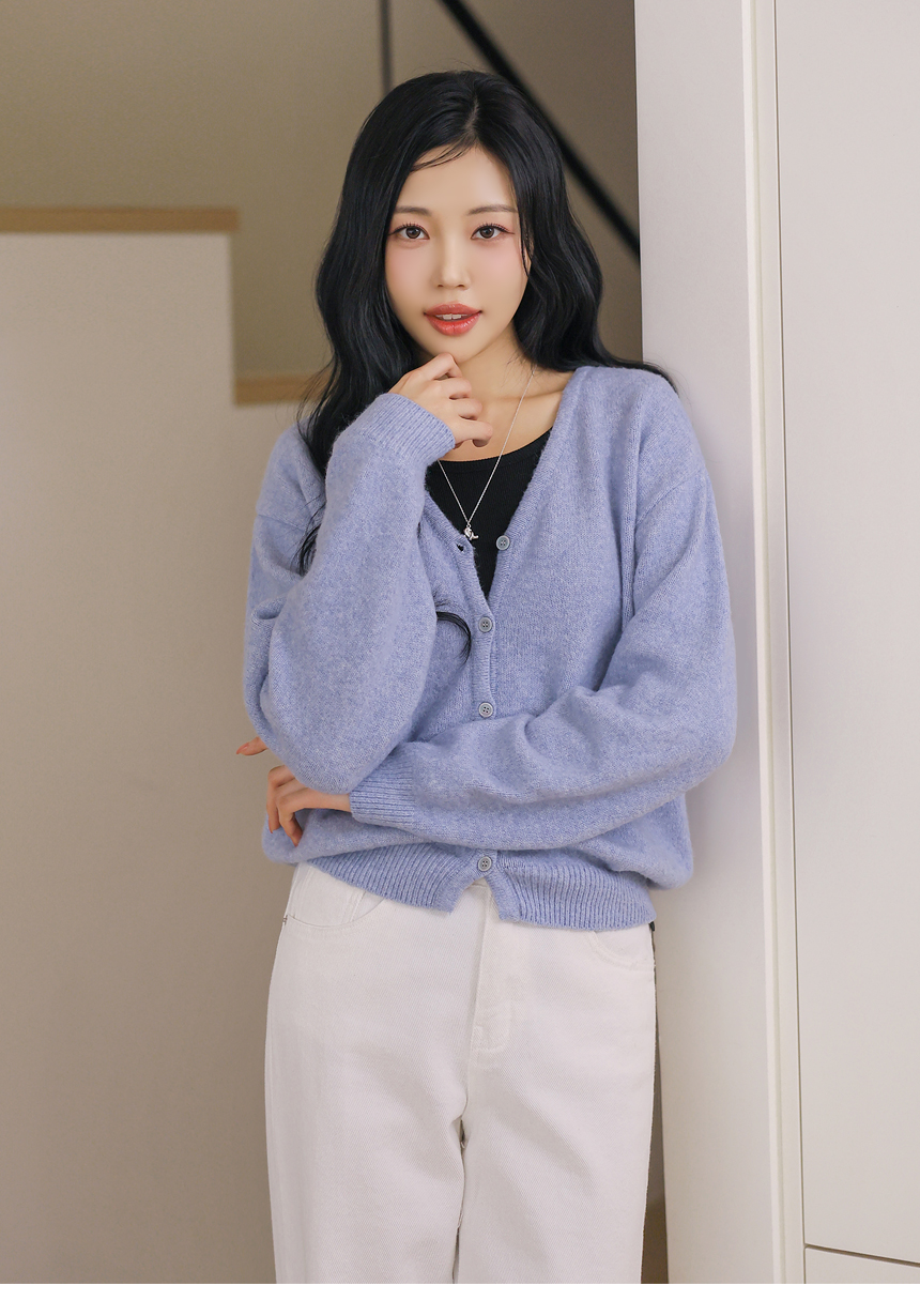 [Theonme] 알리드 울 포근 루즈핏 브이넥 니트 가디건