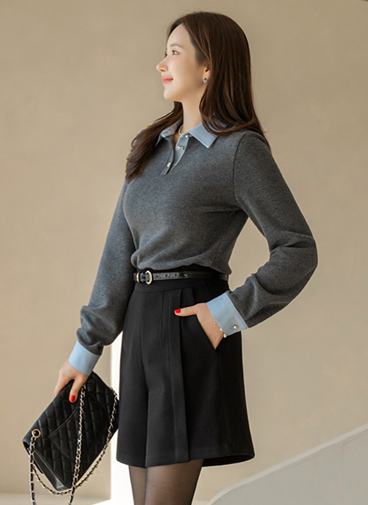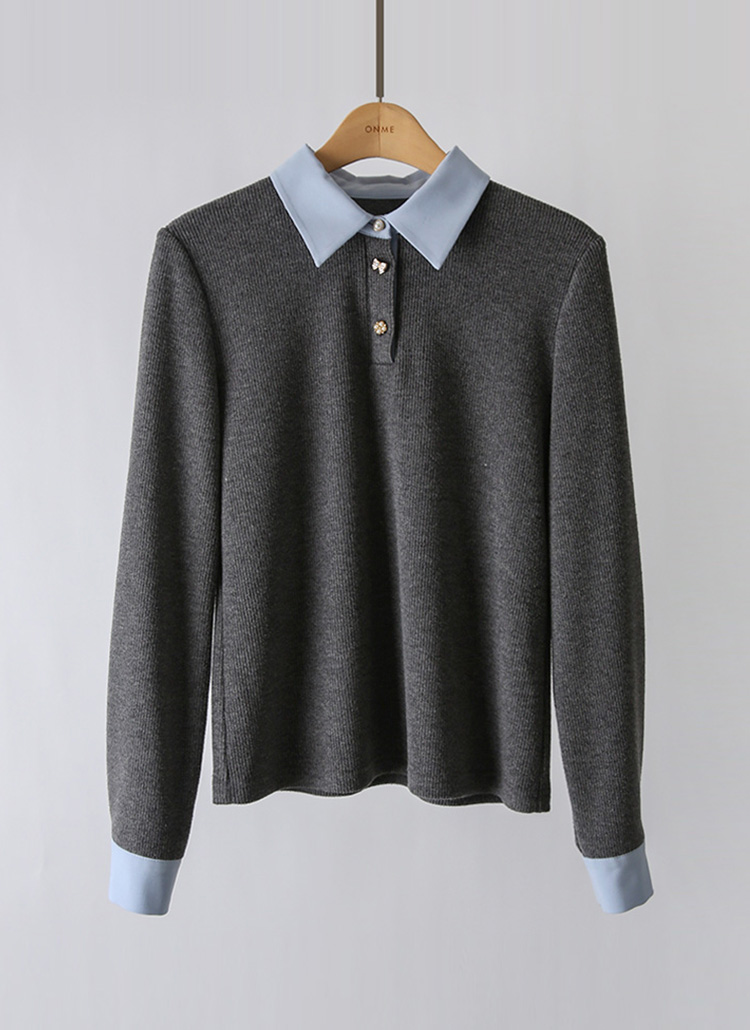 [LouisAngel] シャツドッキング バイカラーリブニットプルオーバー nt44077