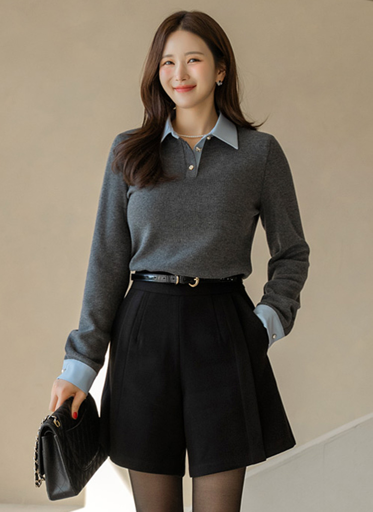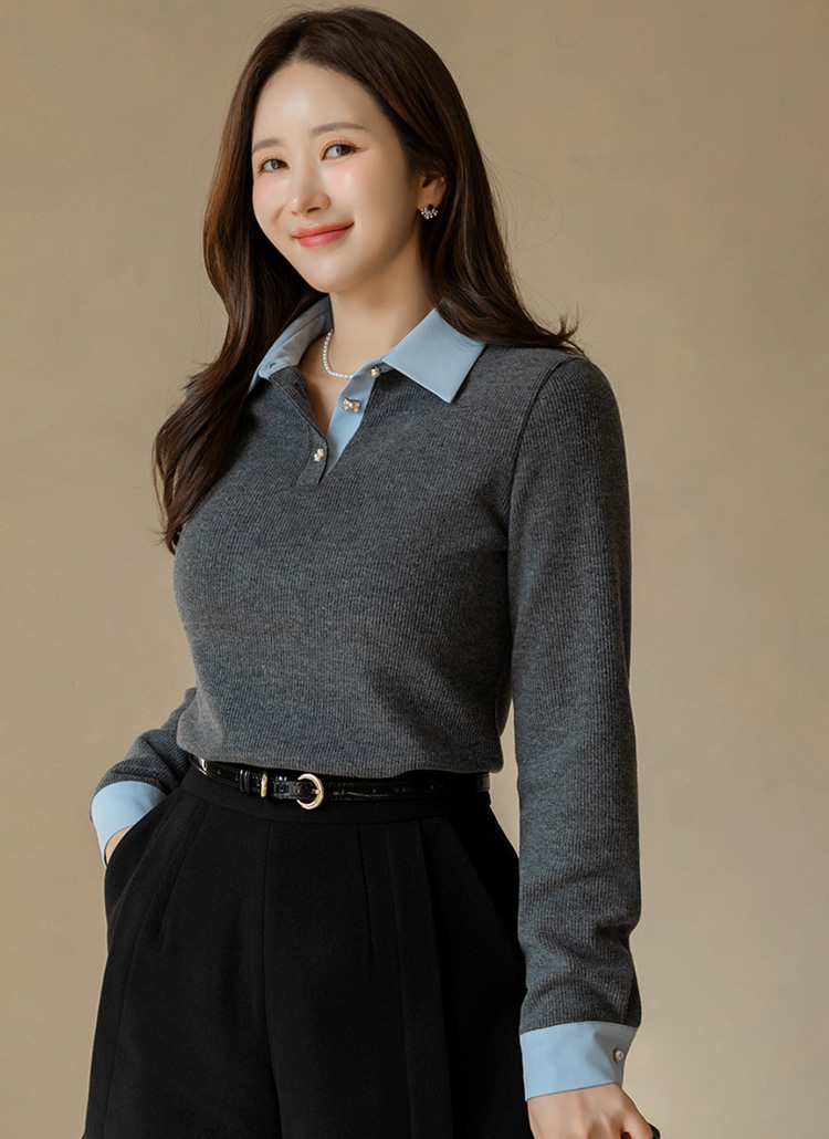 카라와 소맷단에 셔츠 디테일을 더해