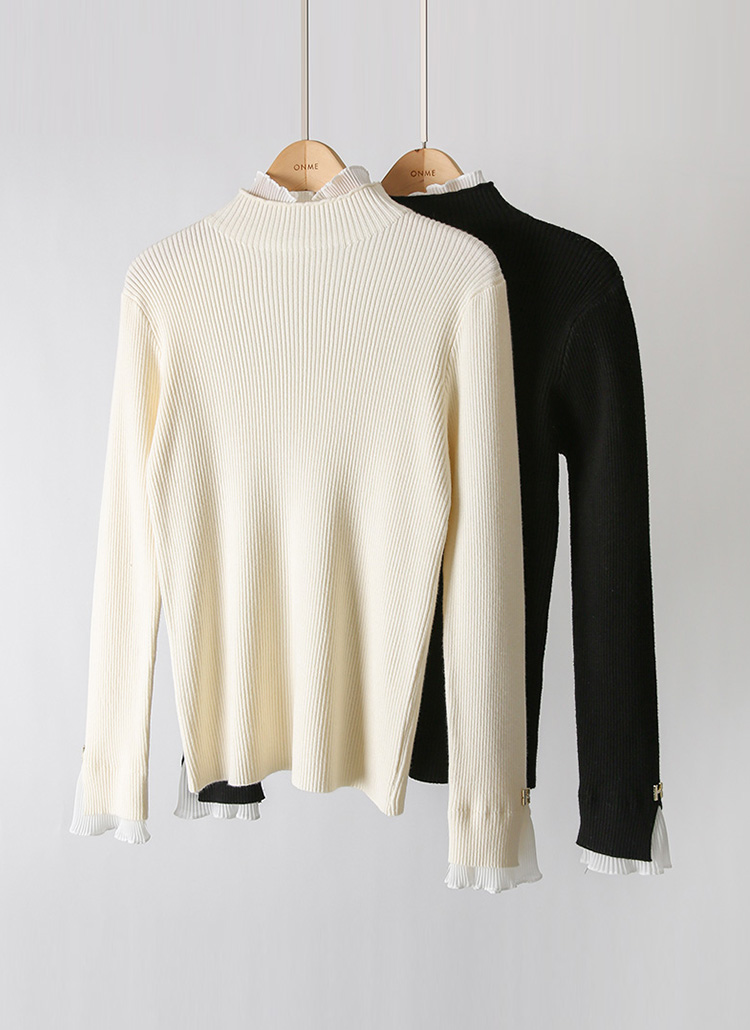 니트의 실용성과 불라우스의 우아함을 동시에 담아낸 배색 니트에요