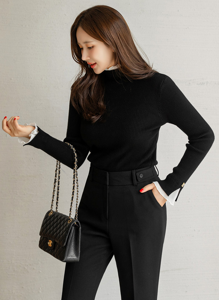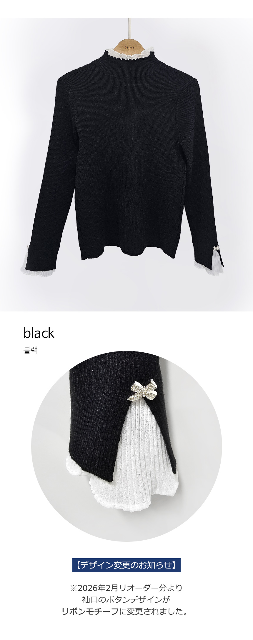 니트의 실용성과 불라우스의 우아함을 동시에 담아낸 배색 니트에요