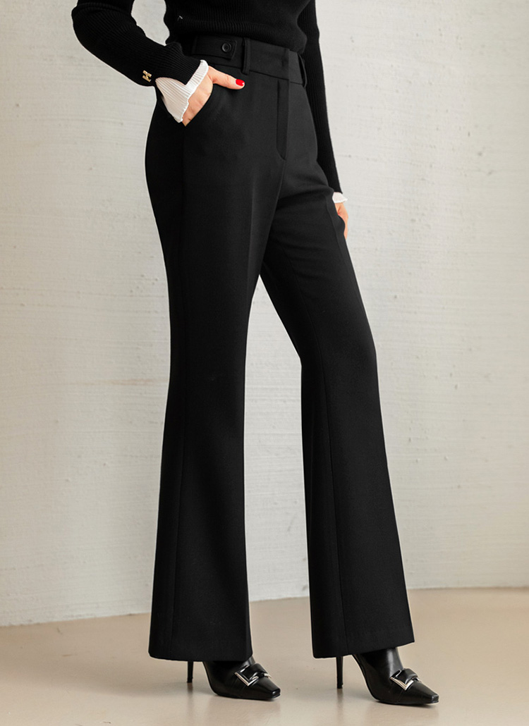 실루엣을 한층 더 정제된 클래식 무드로 완성해주는 부츠컷 슬랙스에요