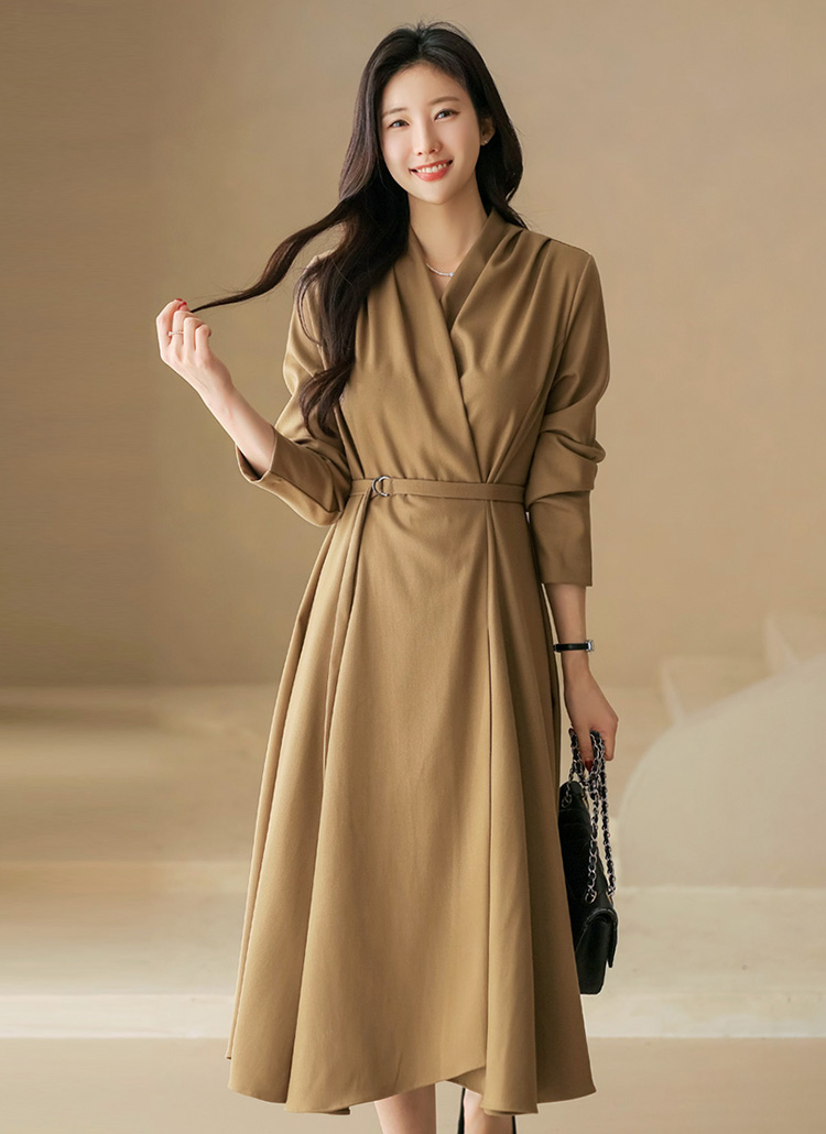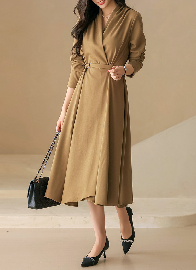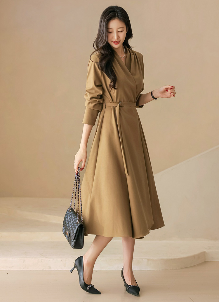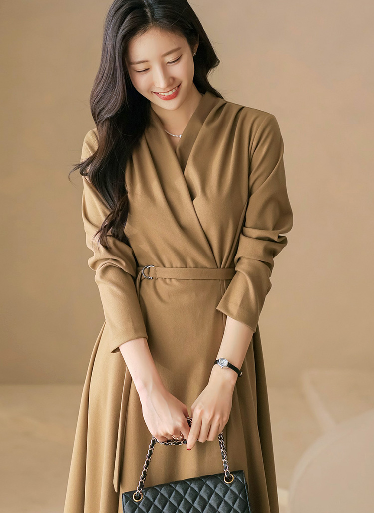 우아하고 여성스러운 무드를 완성해주는 랩 스타일 롱 원피스예요 :)