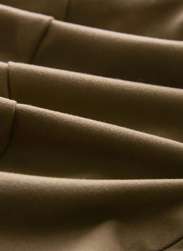 부드럽게 흐르는 드레이프 라인과 셔링 디테일이 어우러져