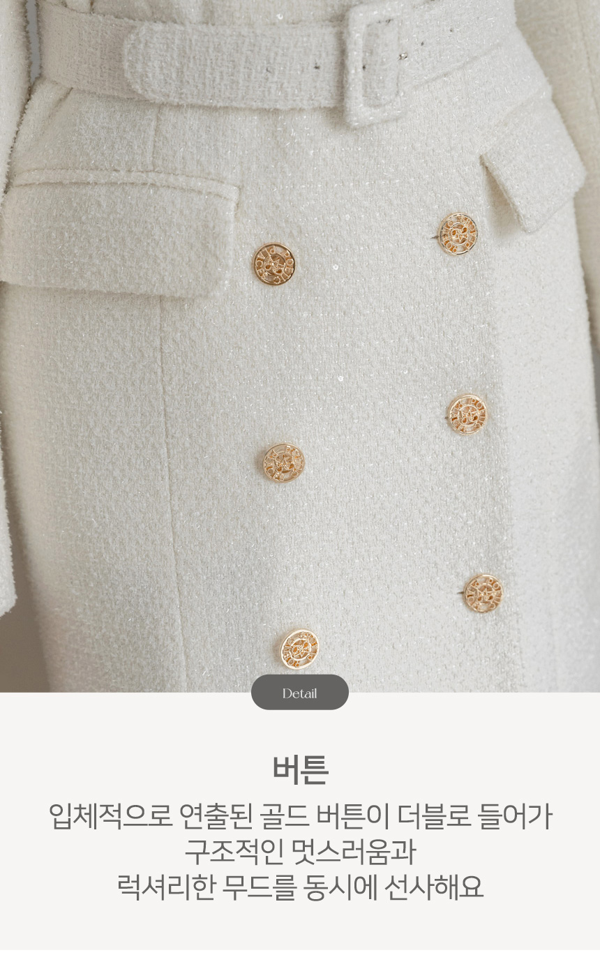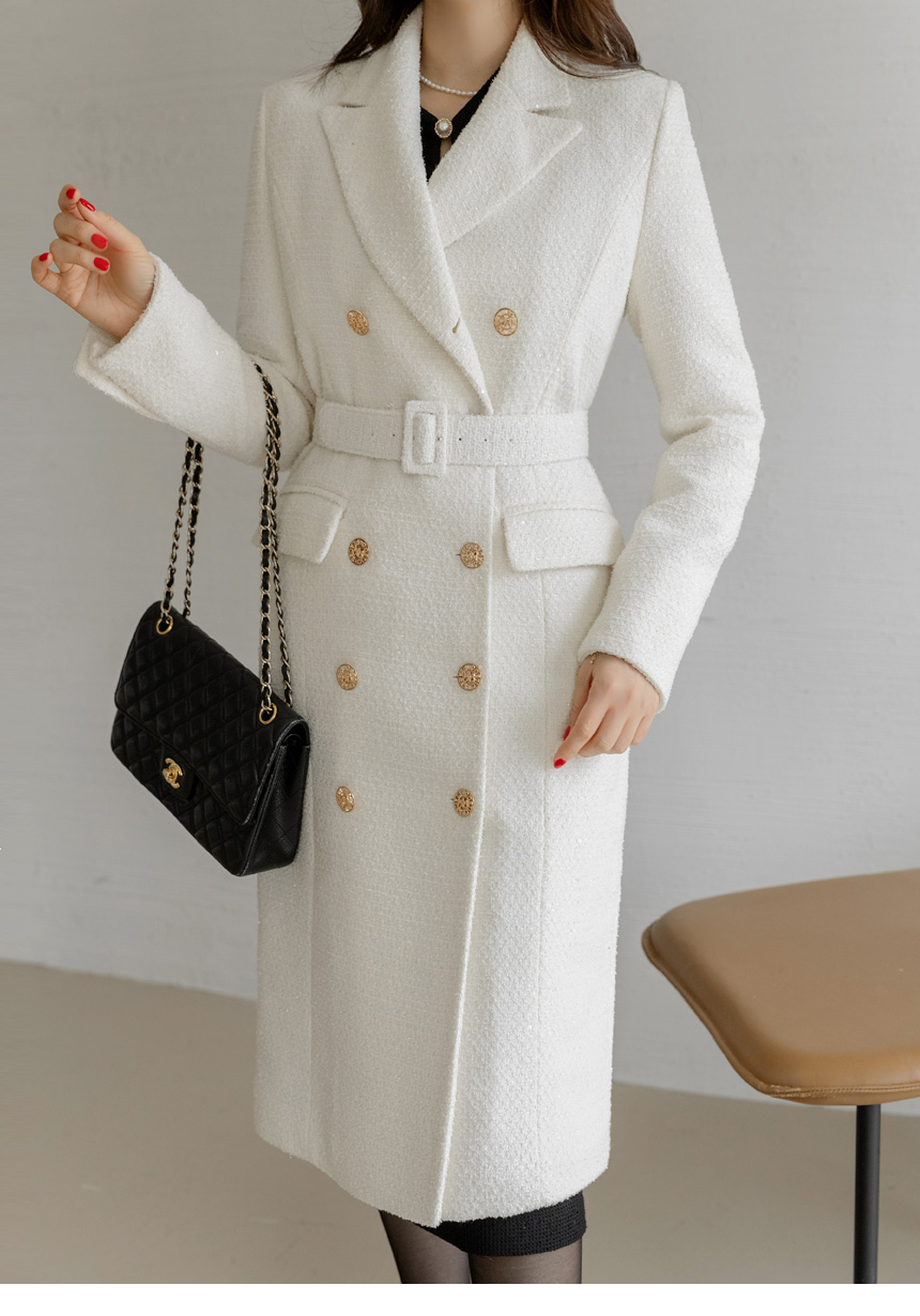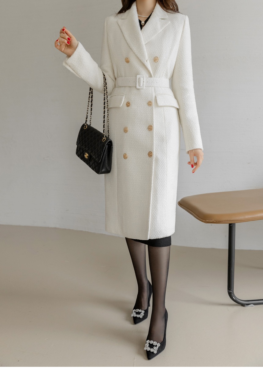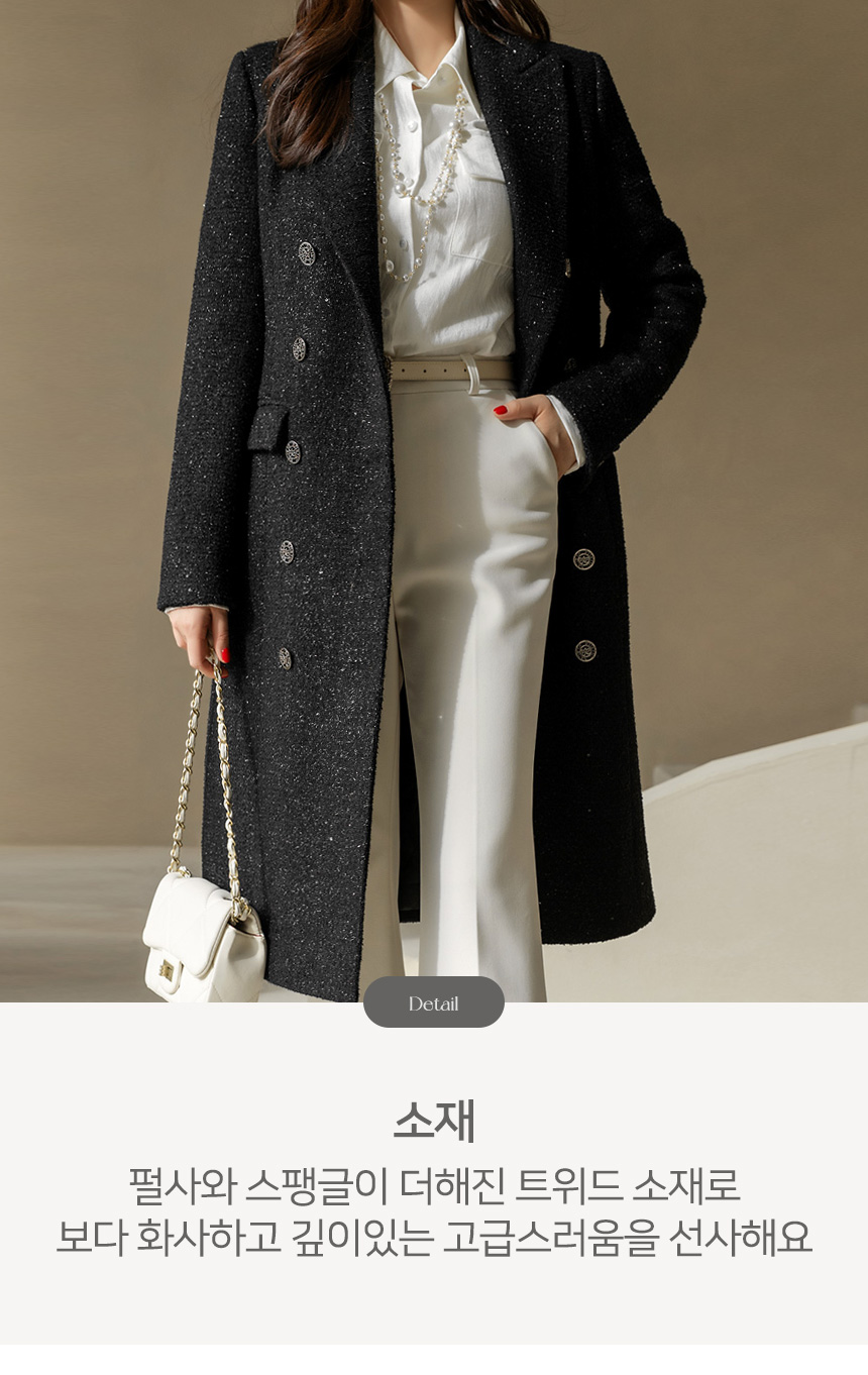 화사하고 럭셔리한 존재감을 자랑하는 더블 롱 코트에요