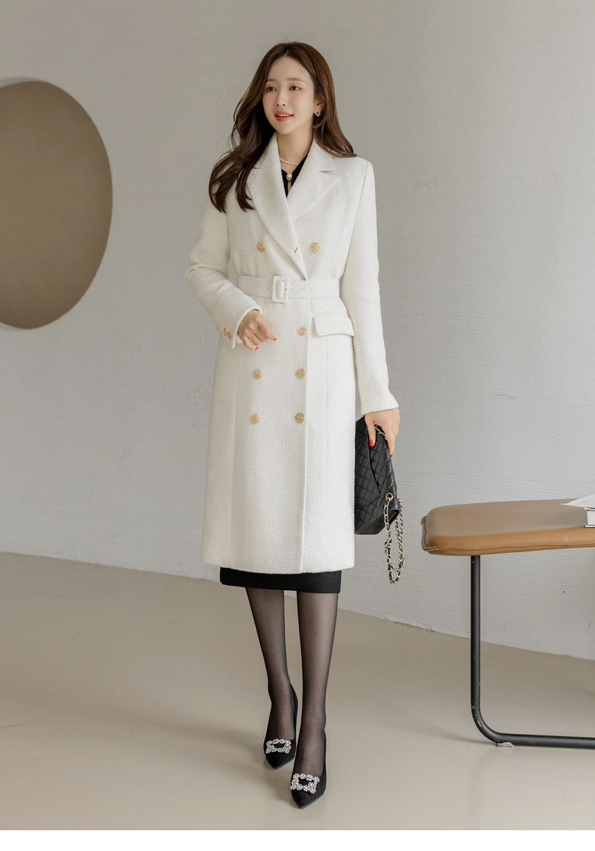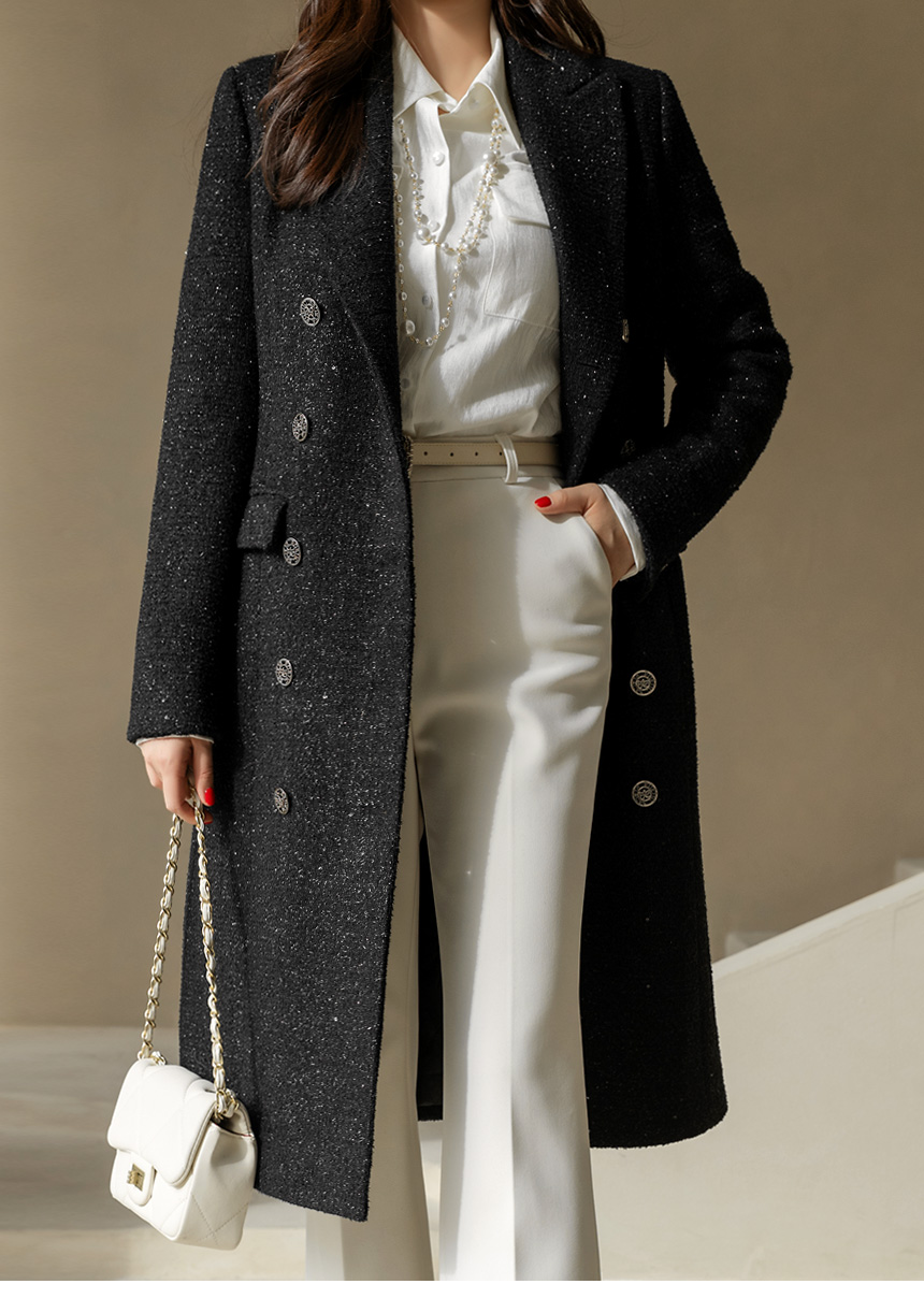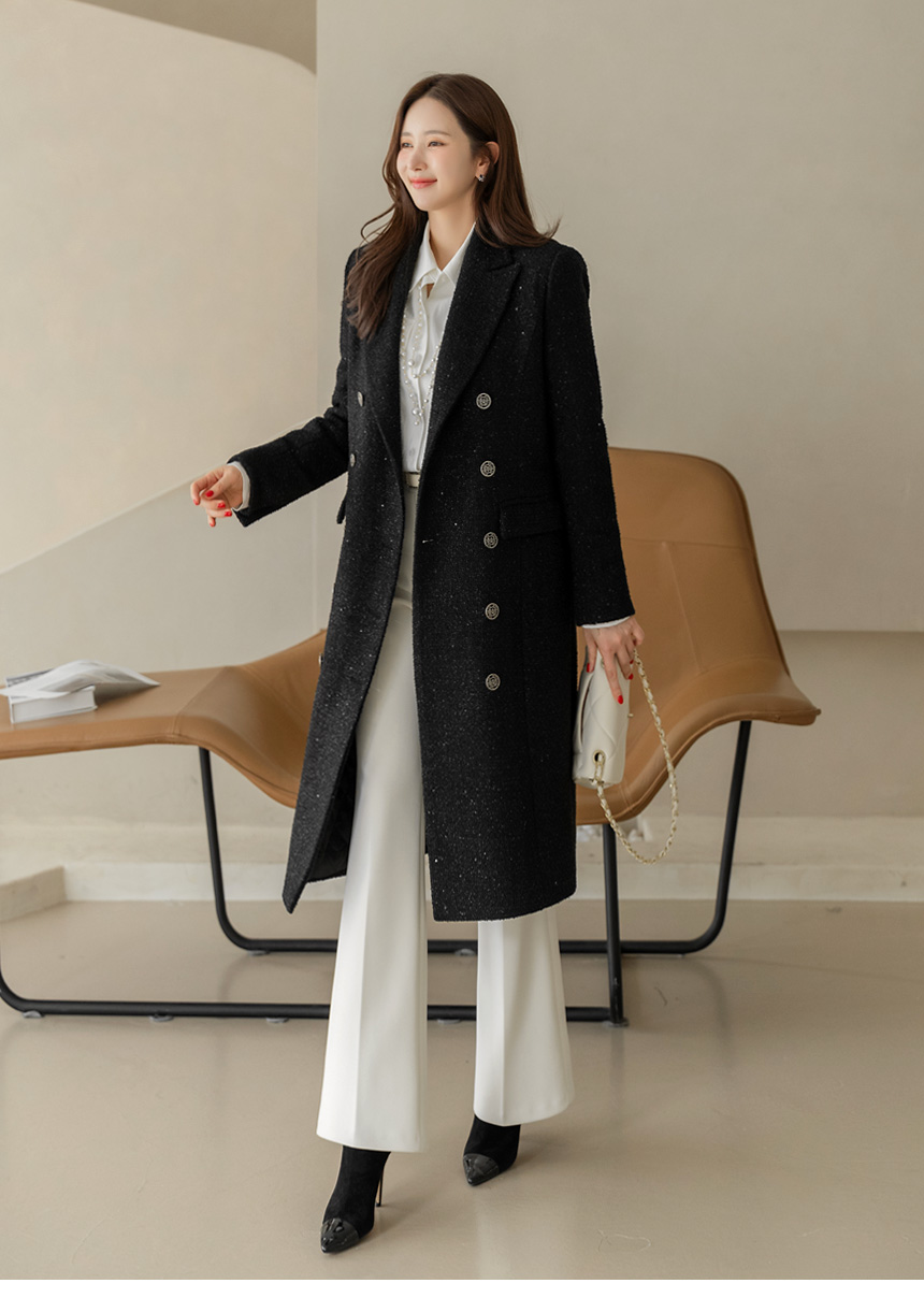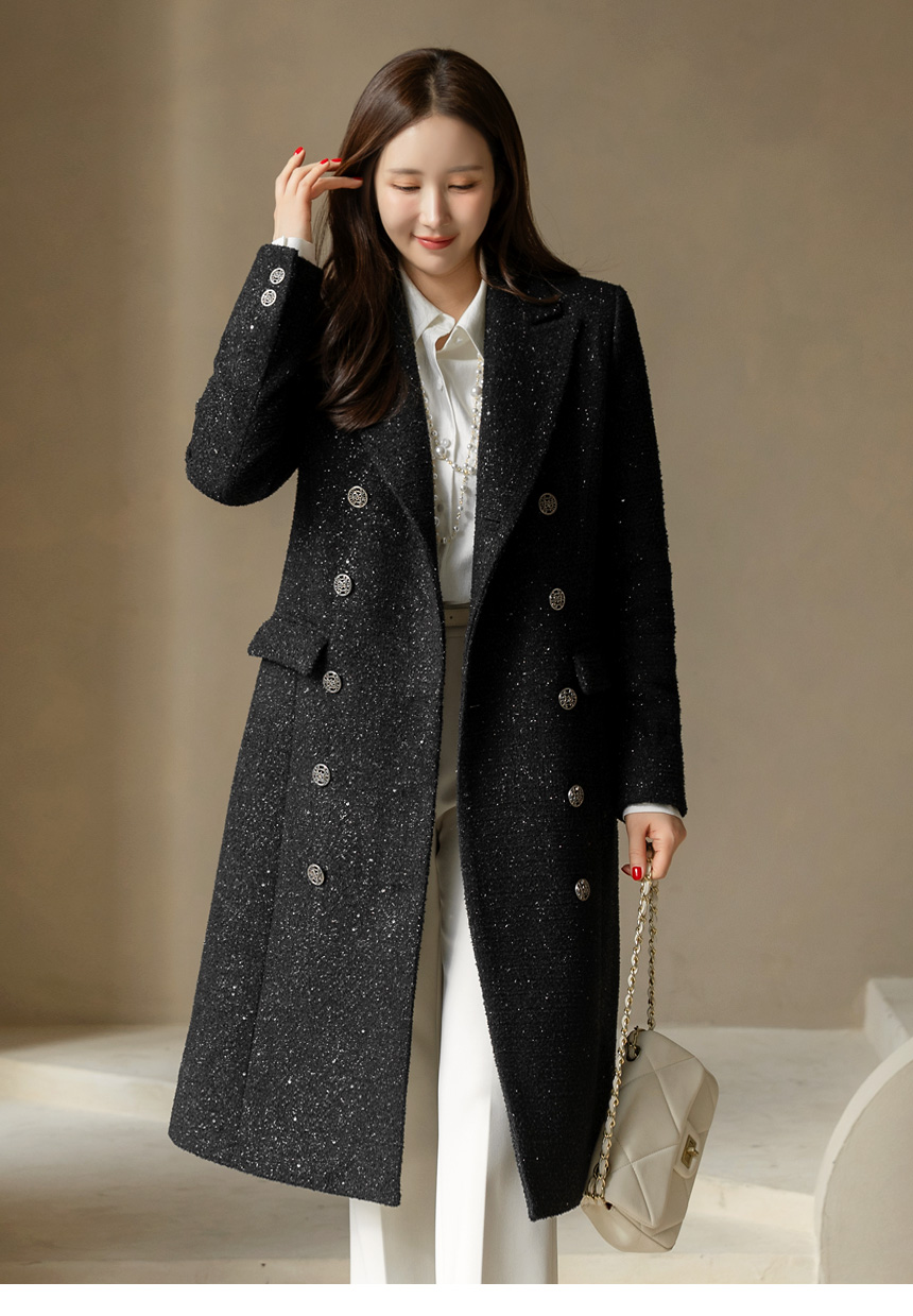 화사하고 럭셔리한 존재감을 자랑하는 더블 롱 코트에요