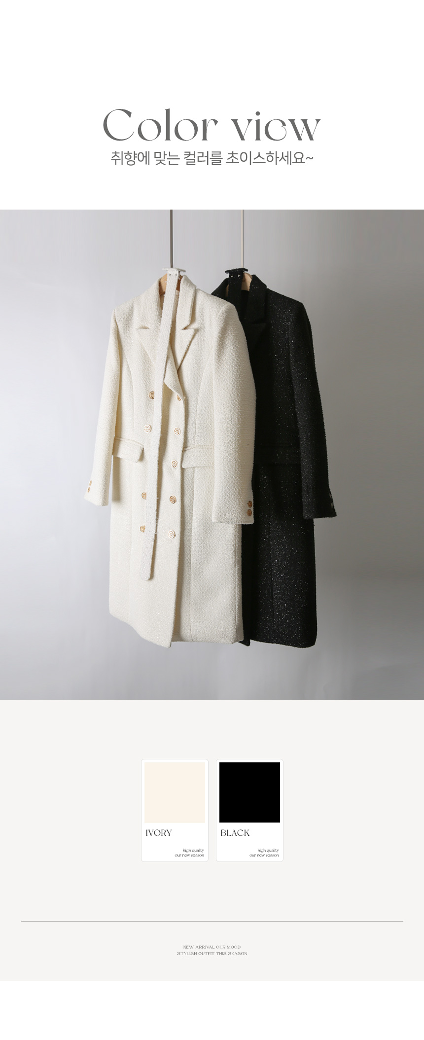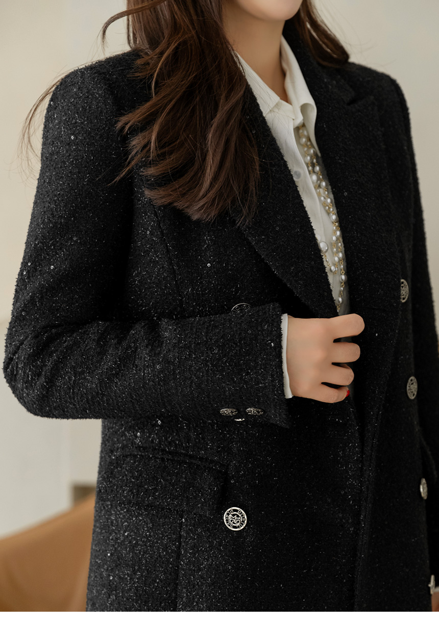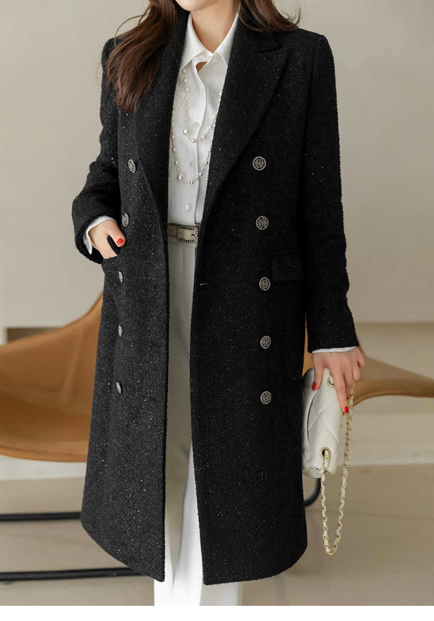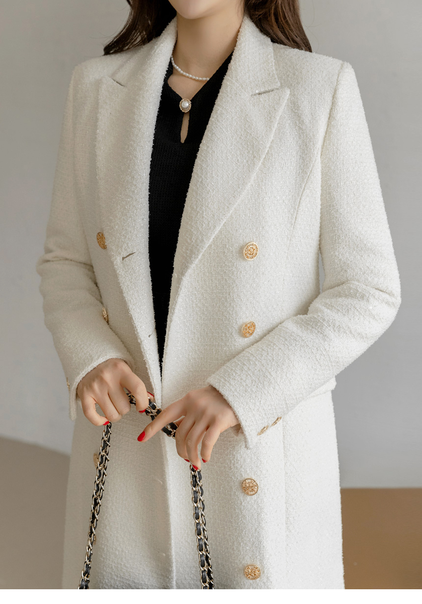 화사하고 럭셔리한 존재감을 자랑하는 더블 롱 코트에요