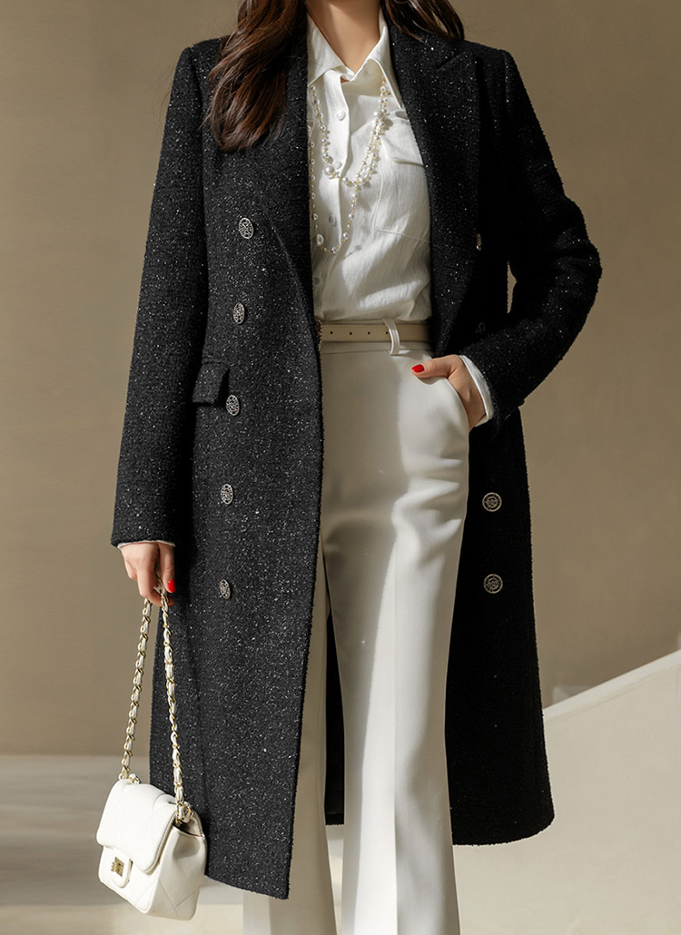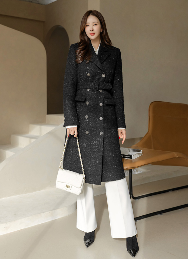 화사하고 럭셔리한 존재감을 자랑하는 더블 롱 코트에요