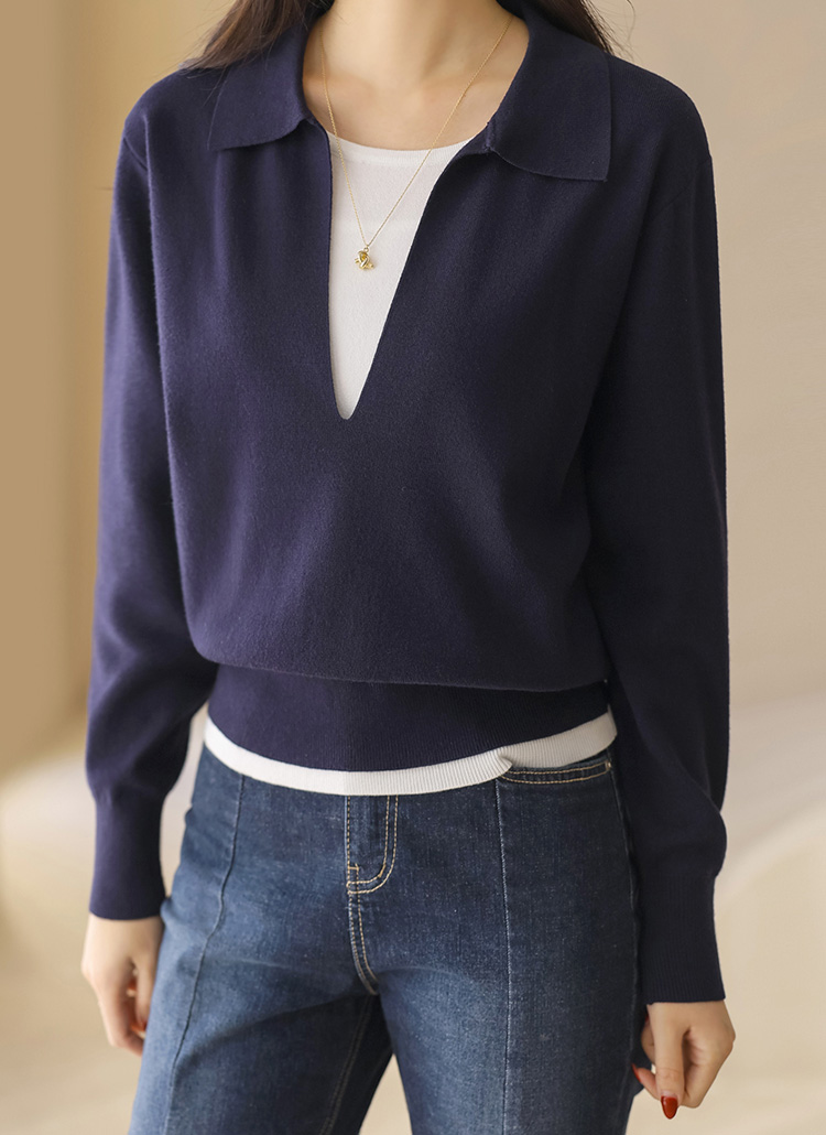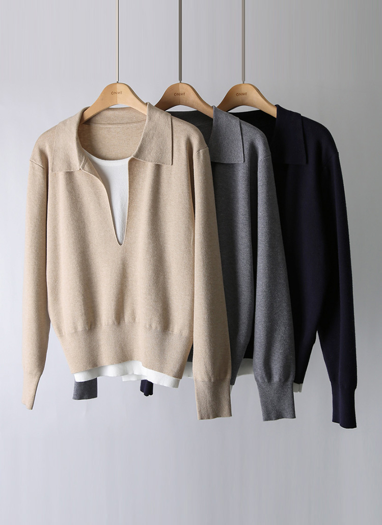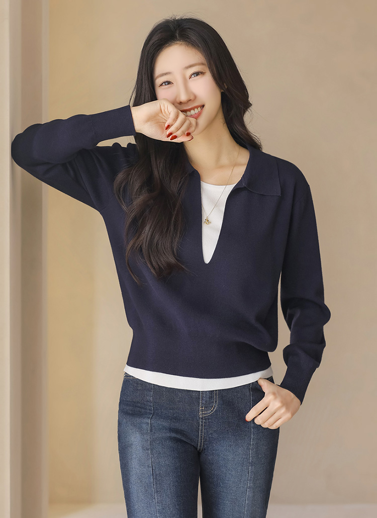 レイヤード風 オープンカラー ニットプルオーバー nt44173