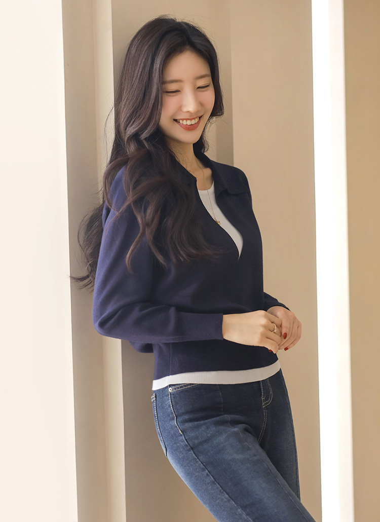 딥브이 카라 배색 니트예요 :)