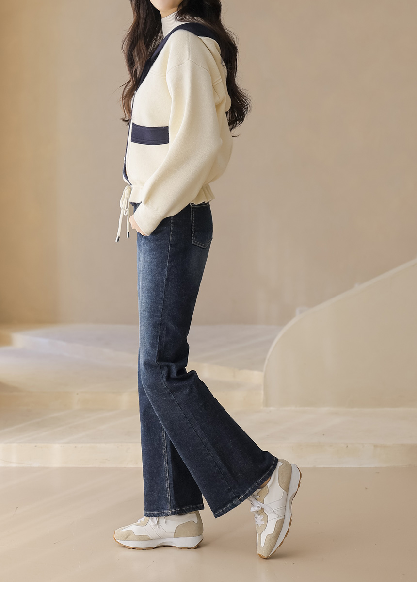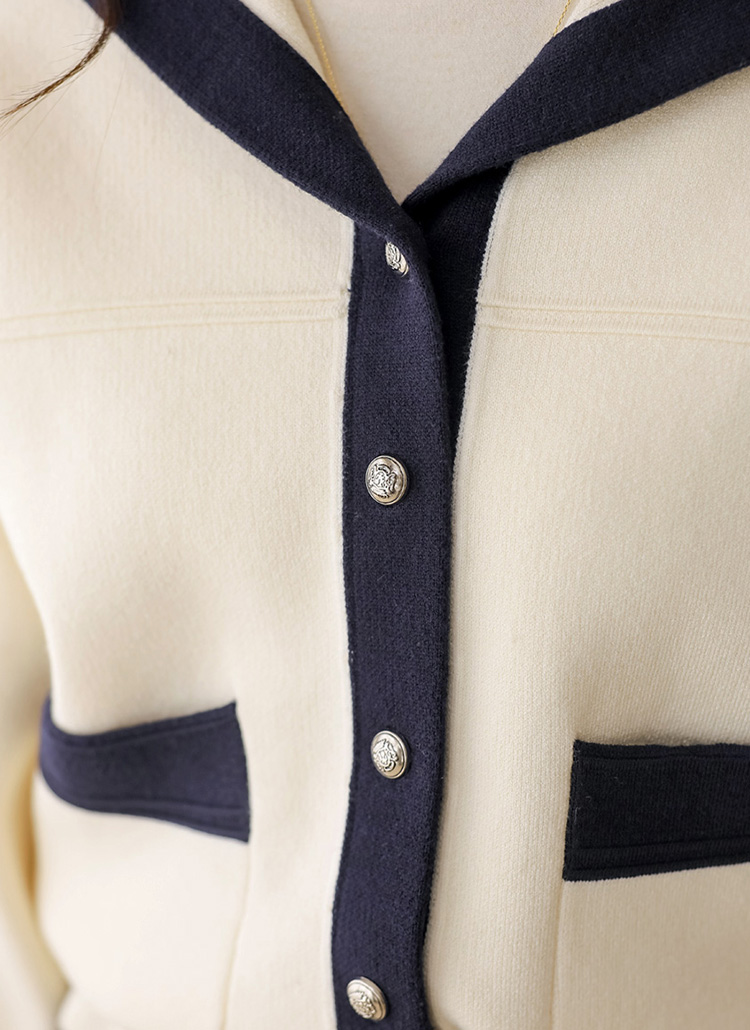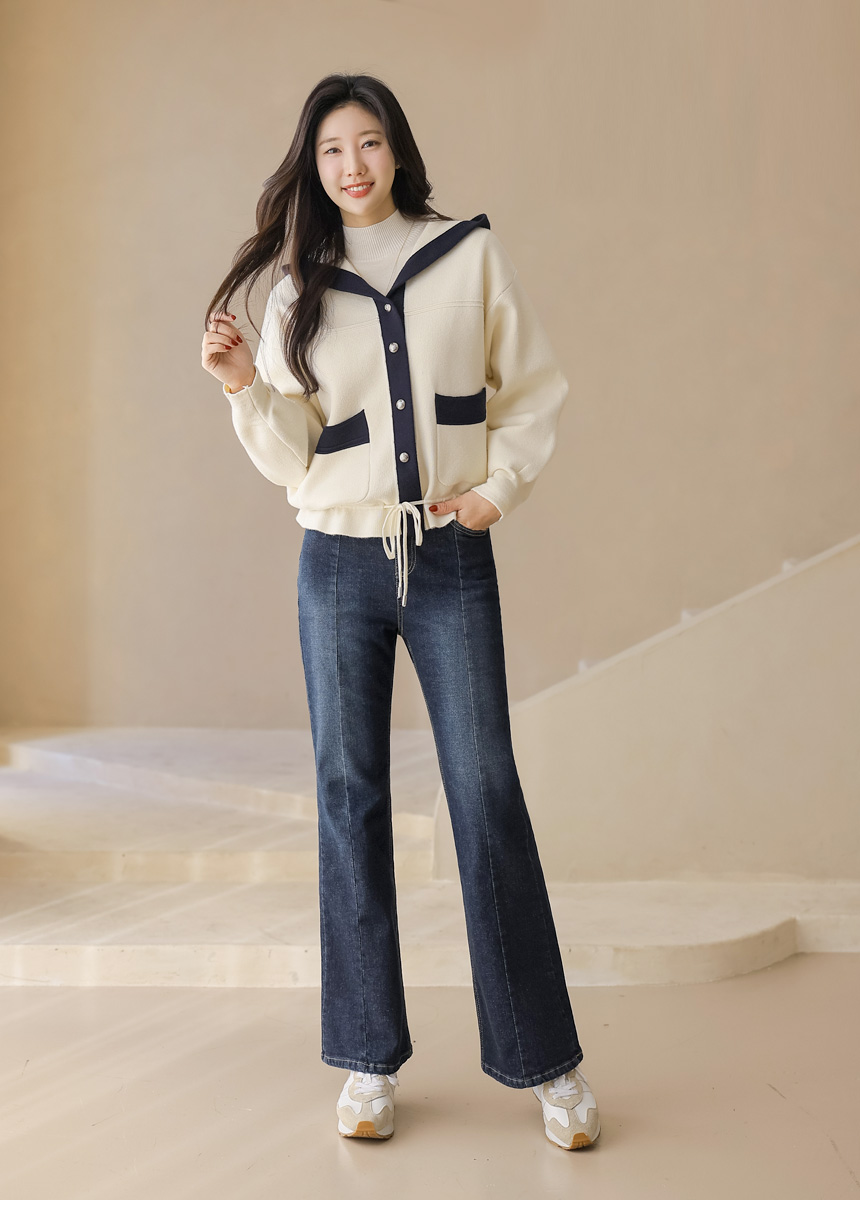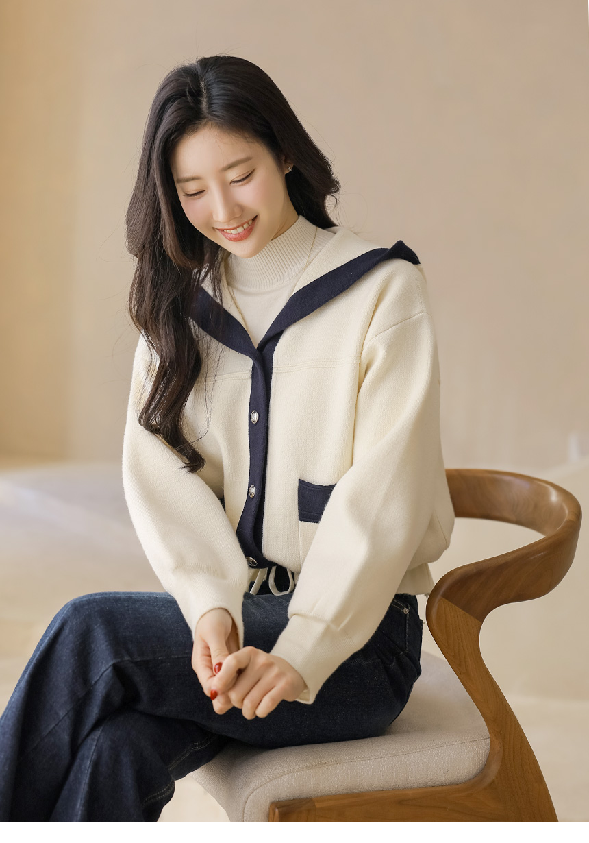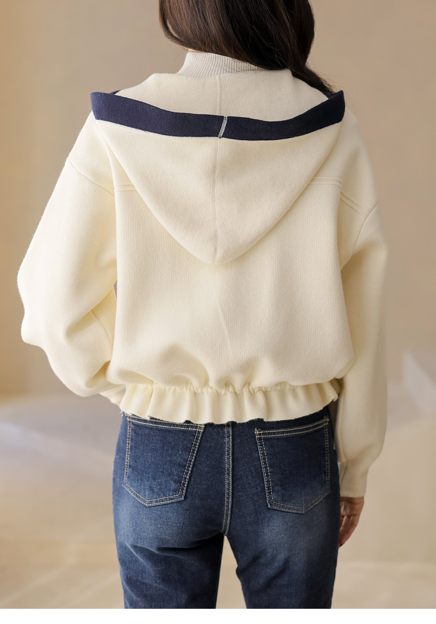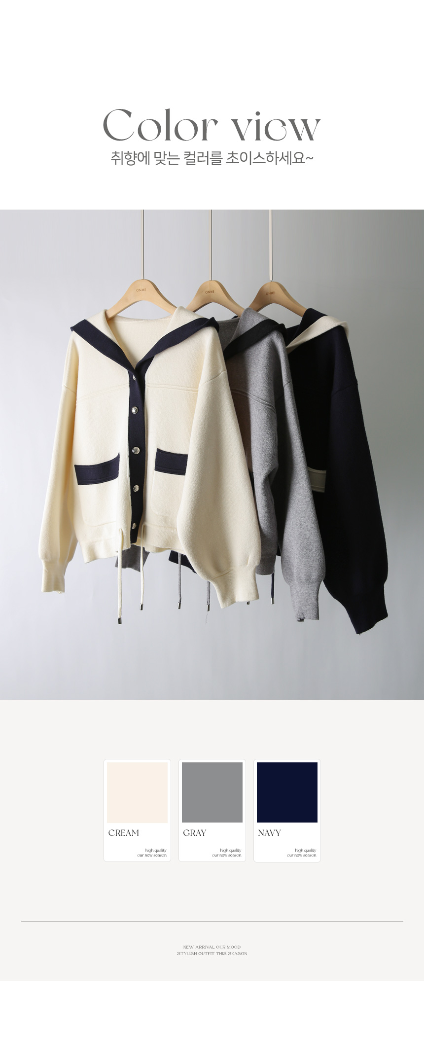 스트링 배색라인 후드 니트 가디건이에요 :)