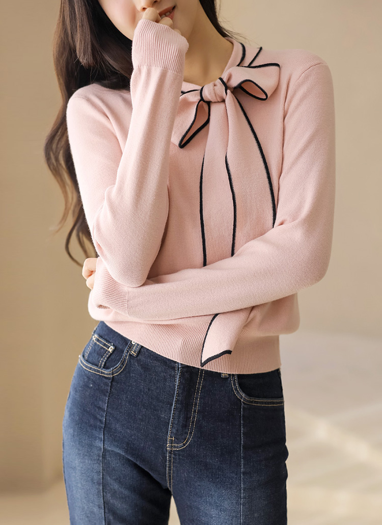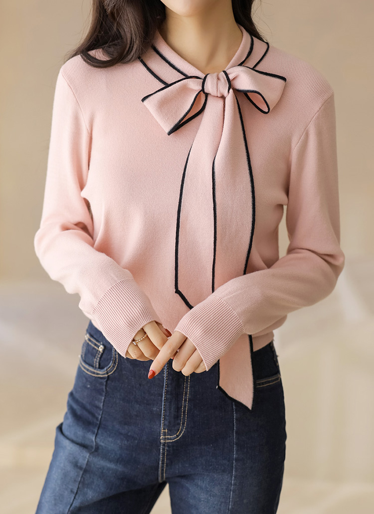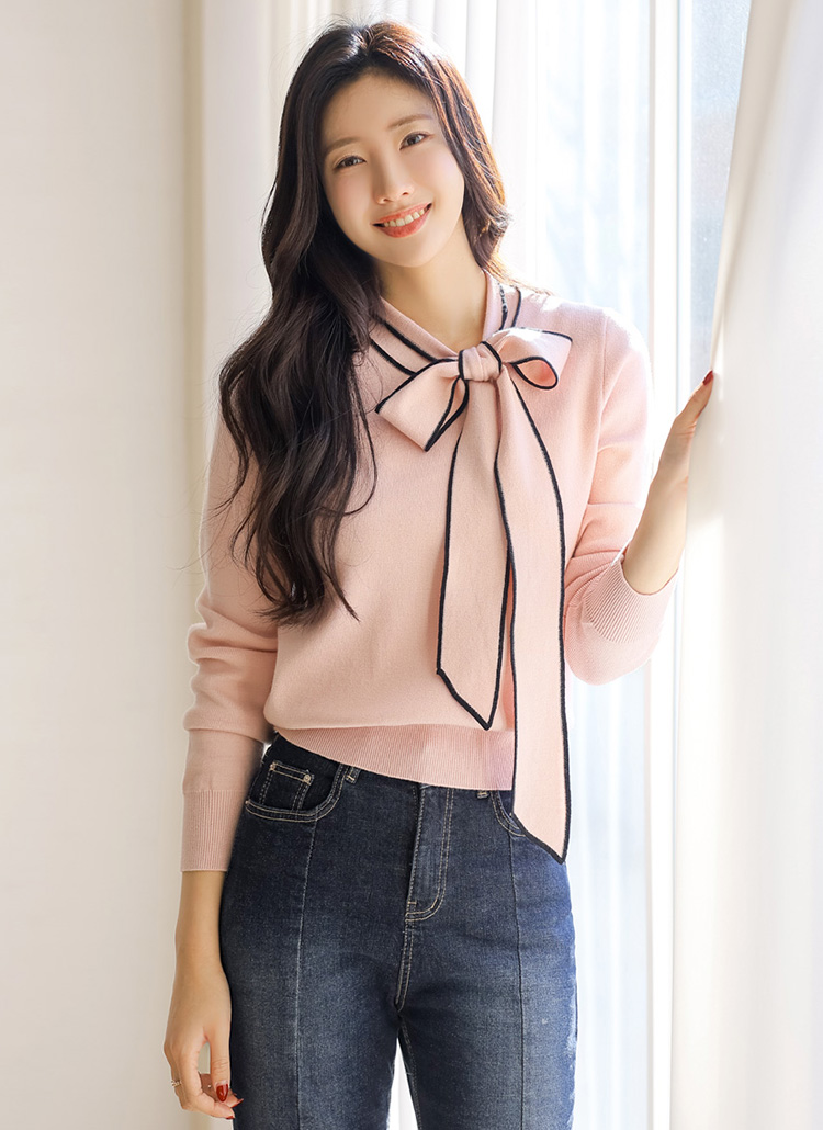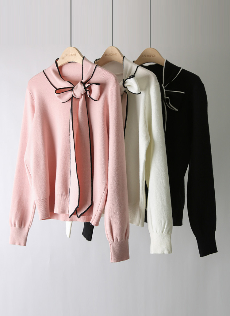배색 리본 타이 디테일이 넥라인에 포인트가 되어