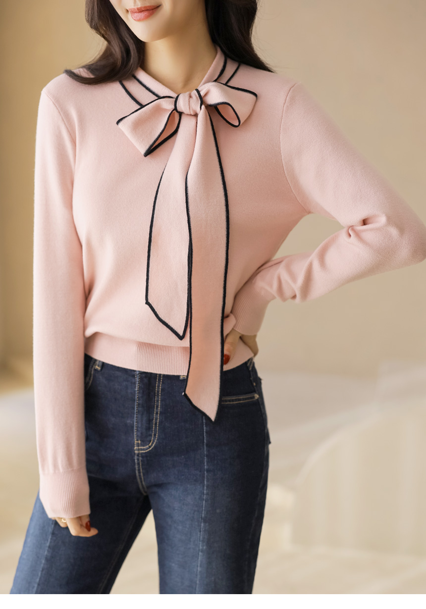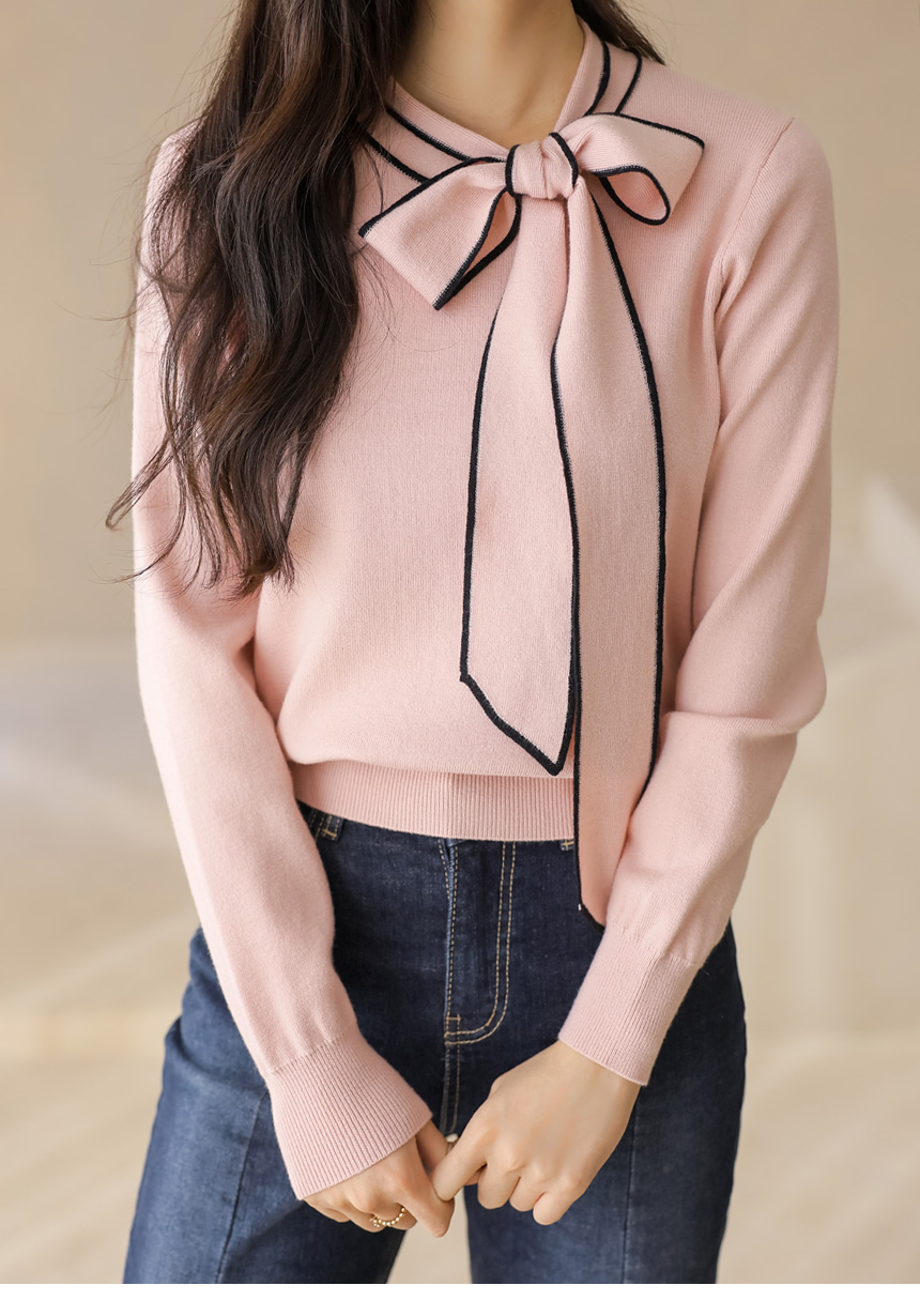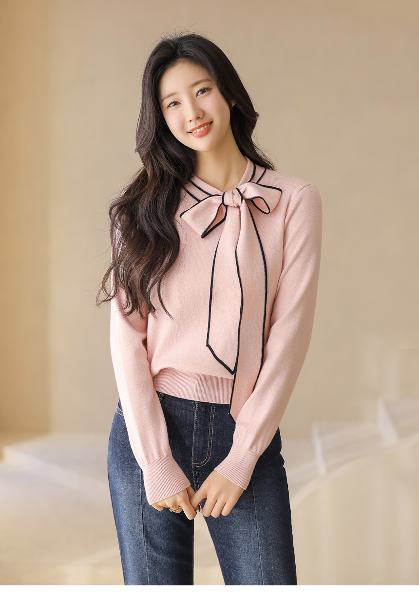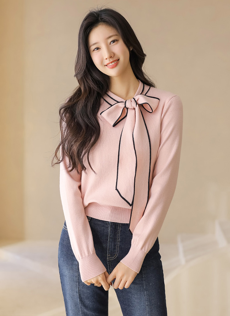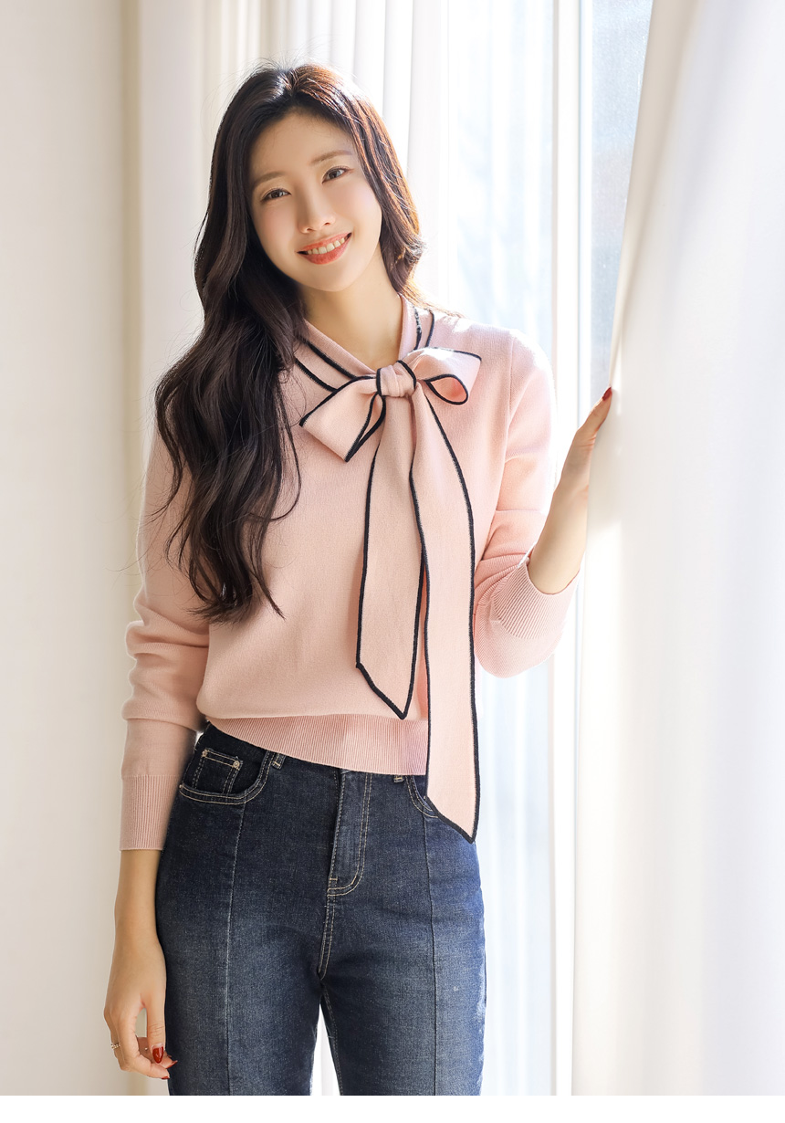 배색 리본 타이로 러블리한 니트예요 :)