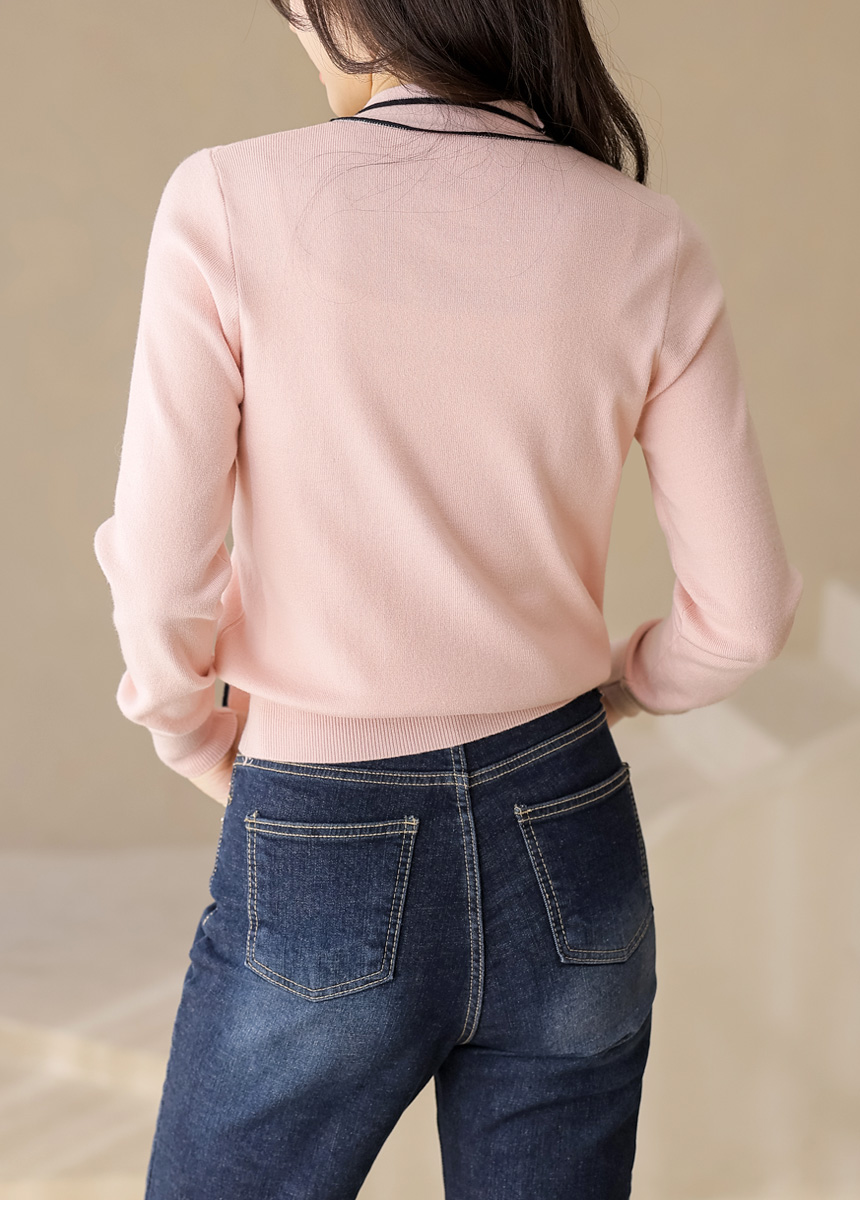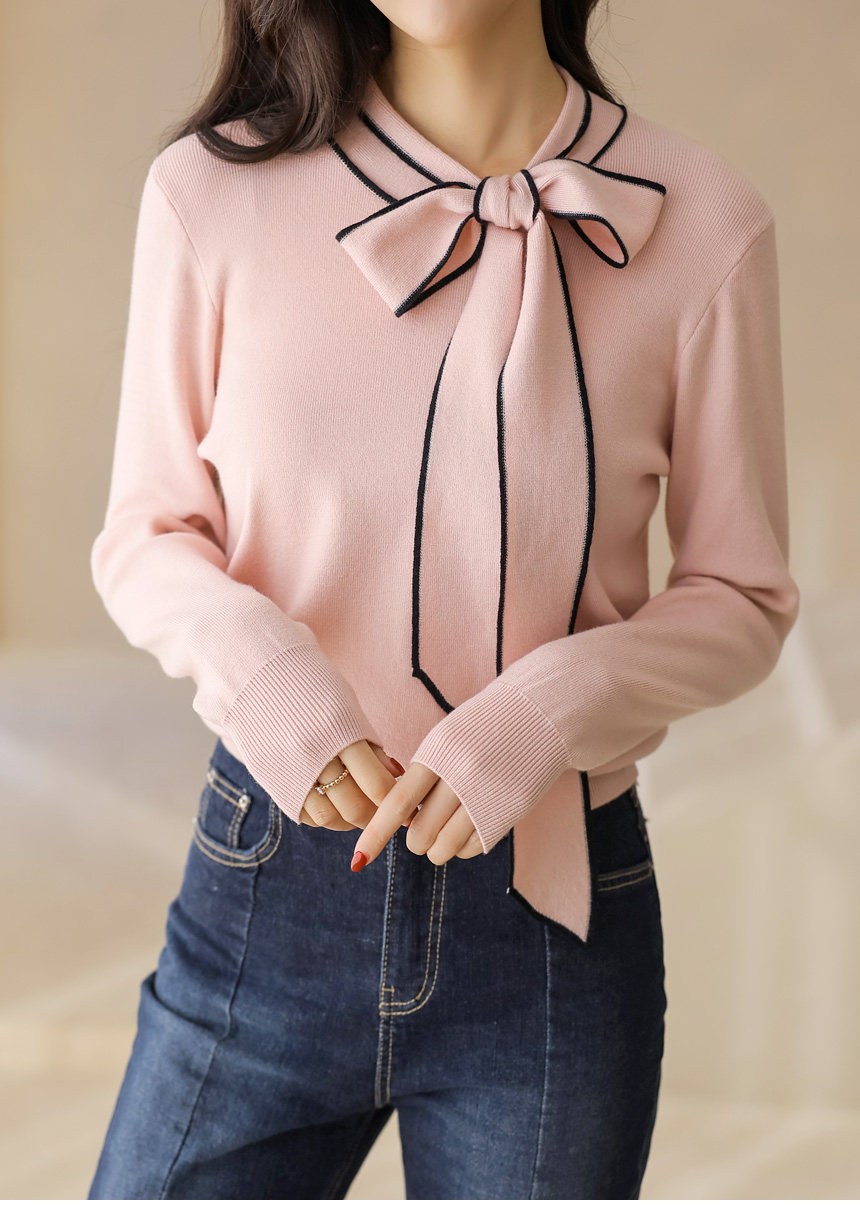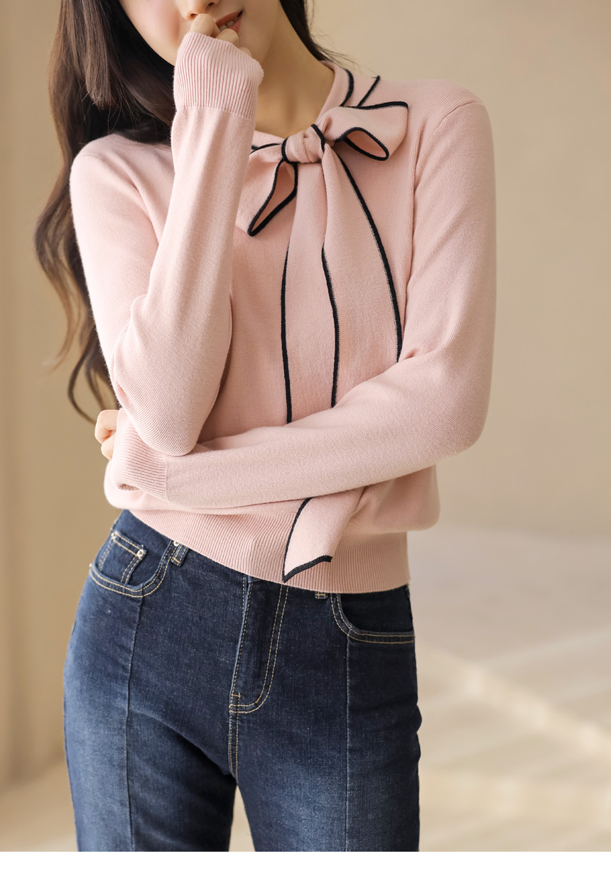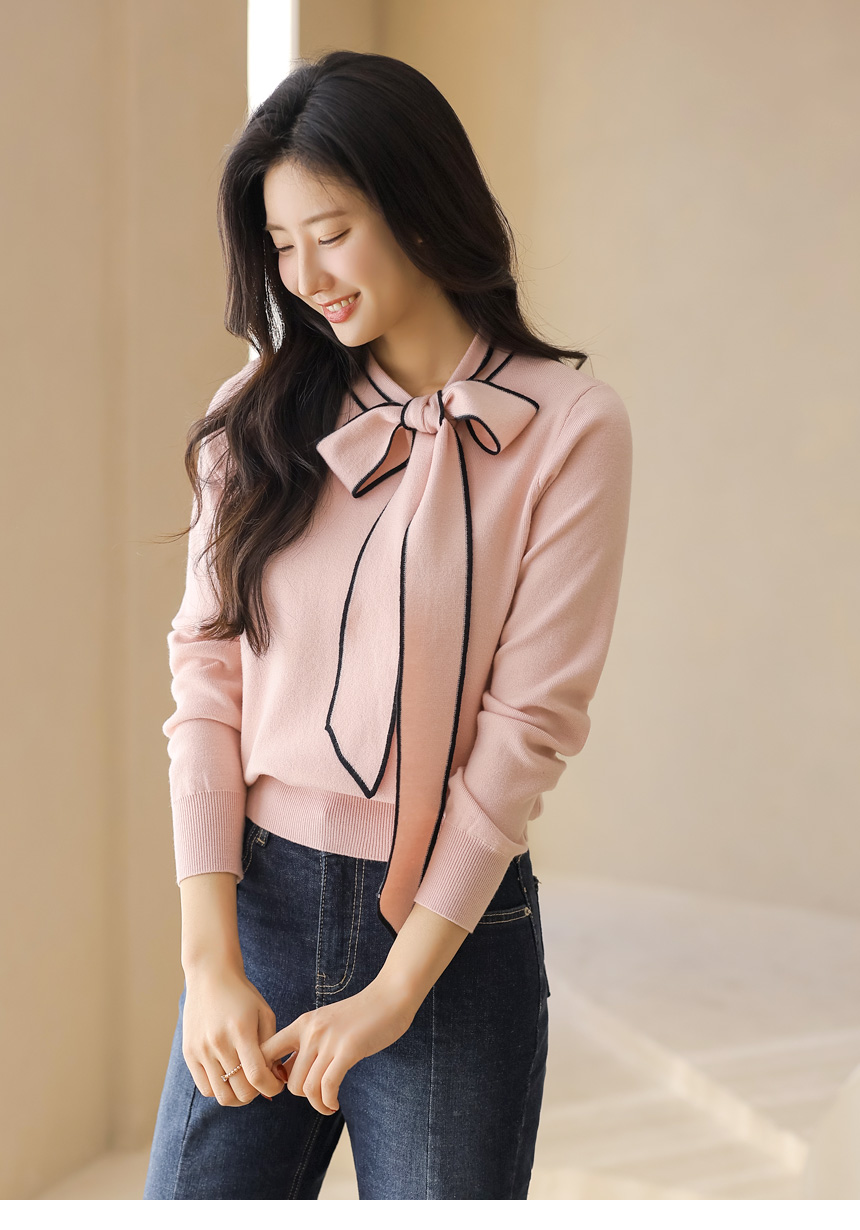 배색 리본 타이로 러블리한 니트예요 :)