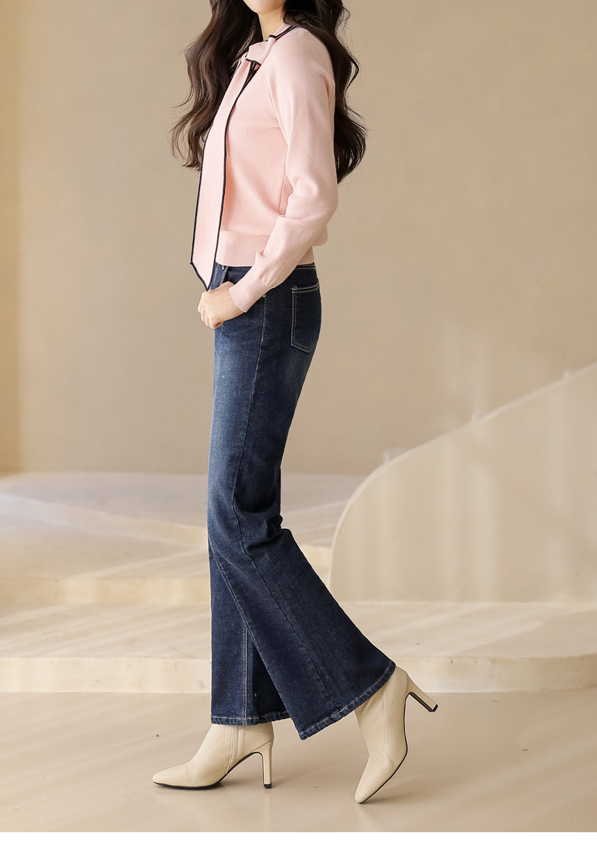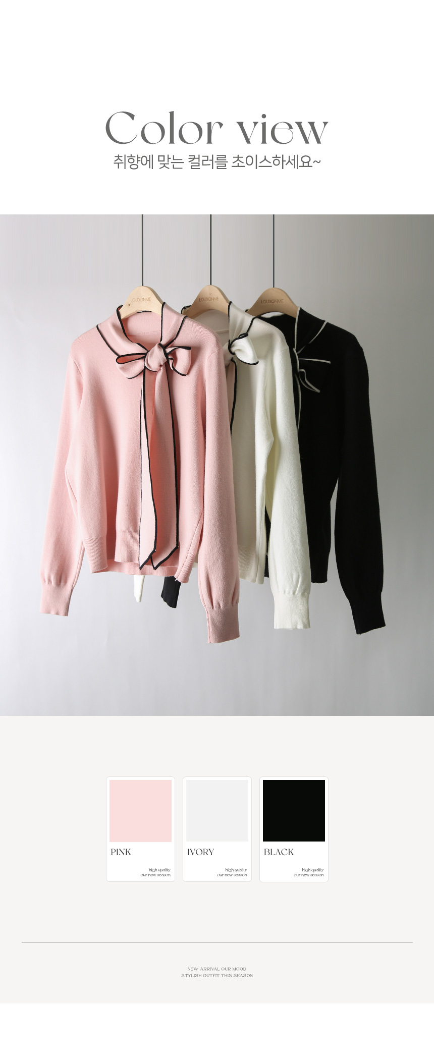 배색 리본 타이 디테일이 넥라인에 포인트가 되어