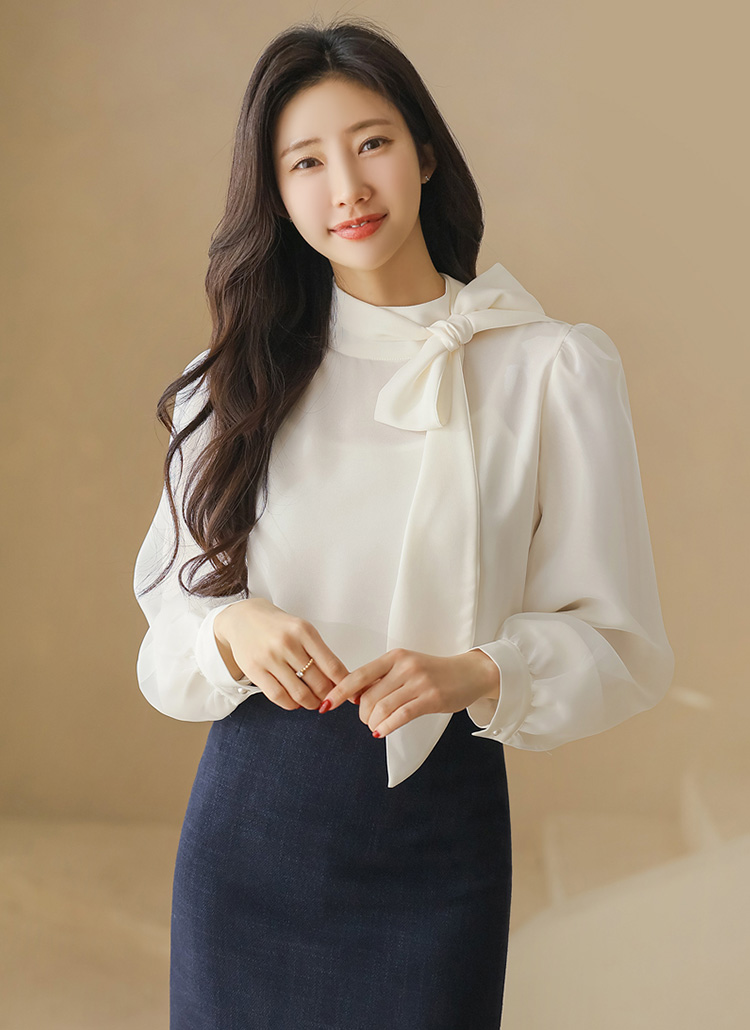 우아하고 여성스러운 무드를 완성해주는 블라우스에요 :)