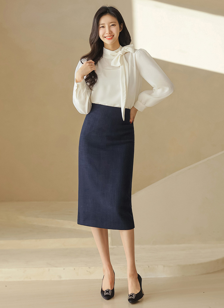 세련된 H라인 실루엣의 미디 롱 스커트에요 :)