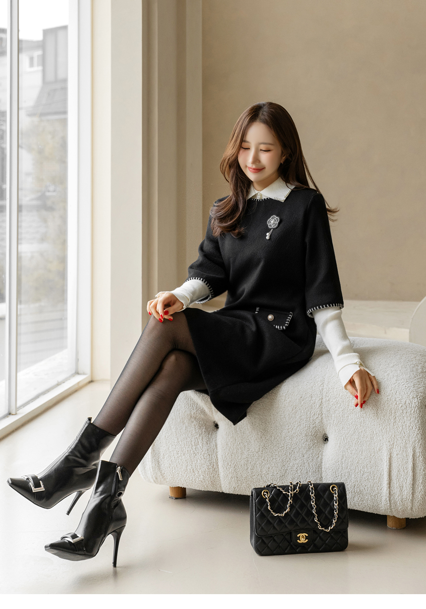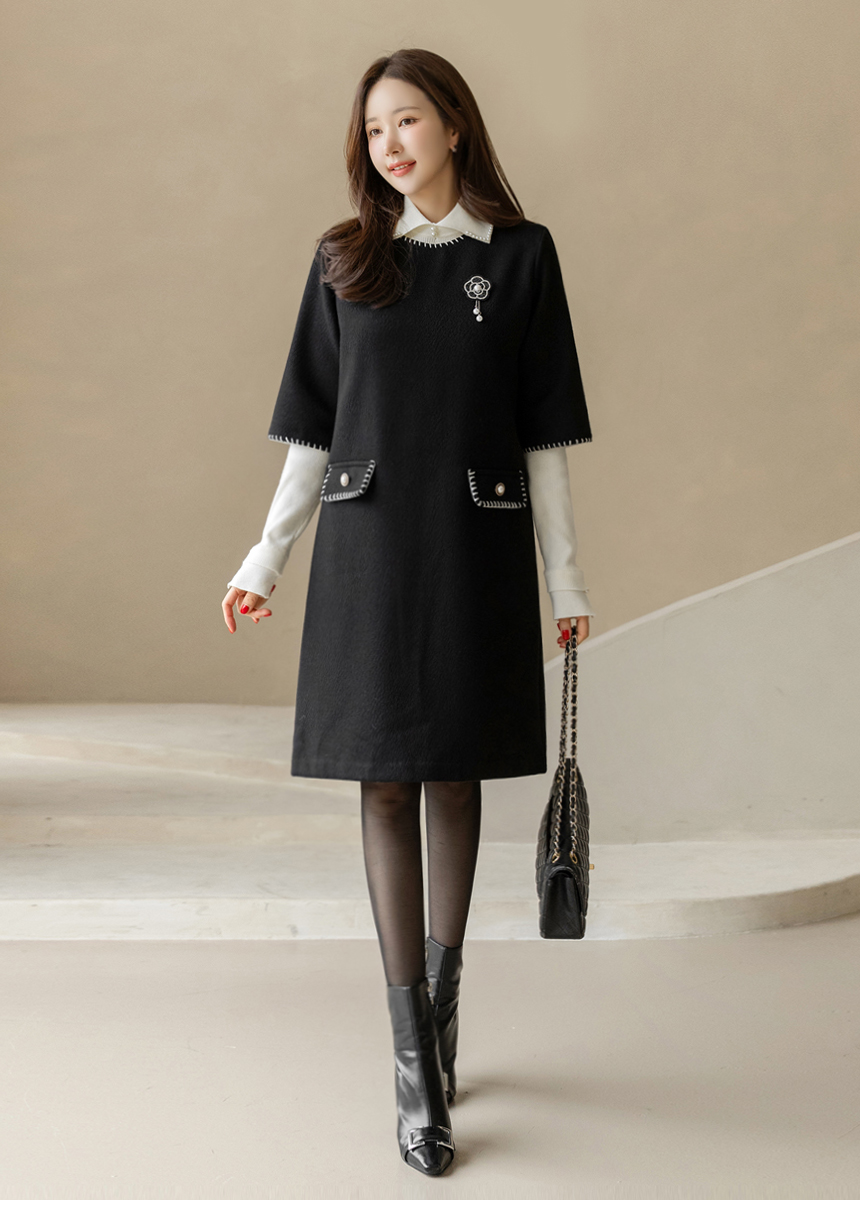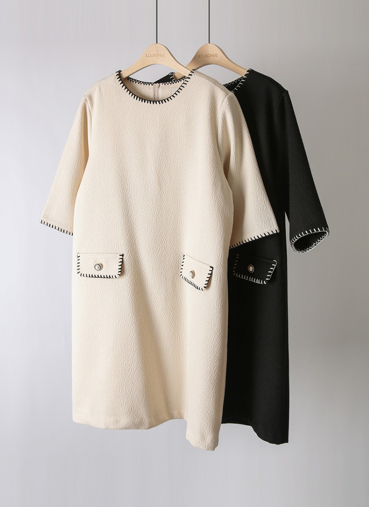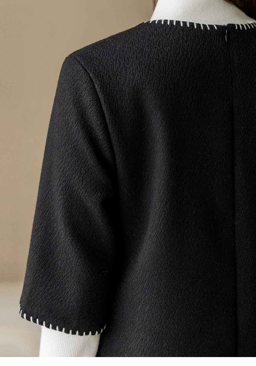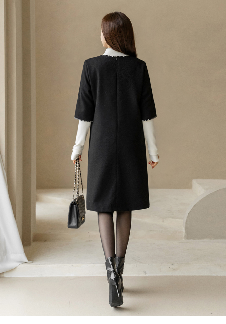 ステッチポイント ウールブレンド 7分袖チュニックワンピース op44200