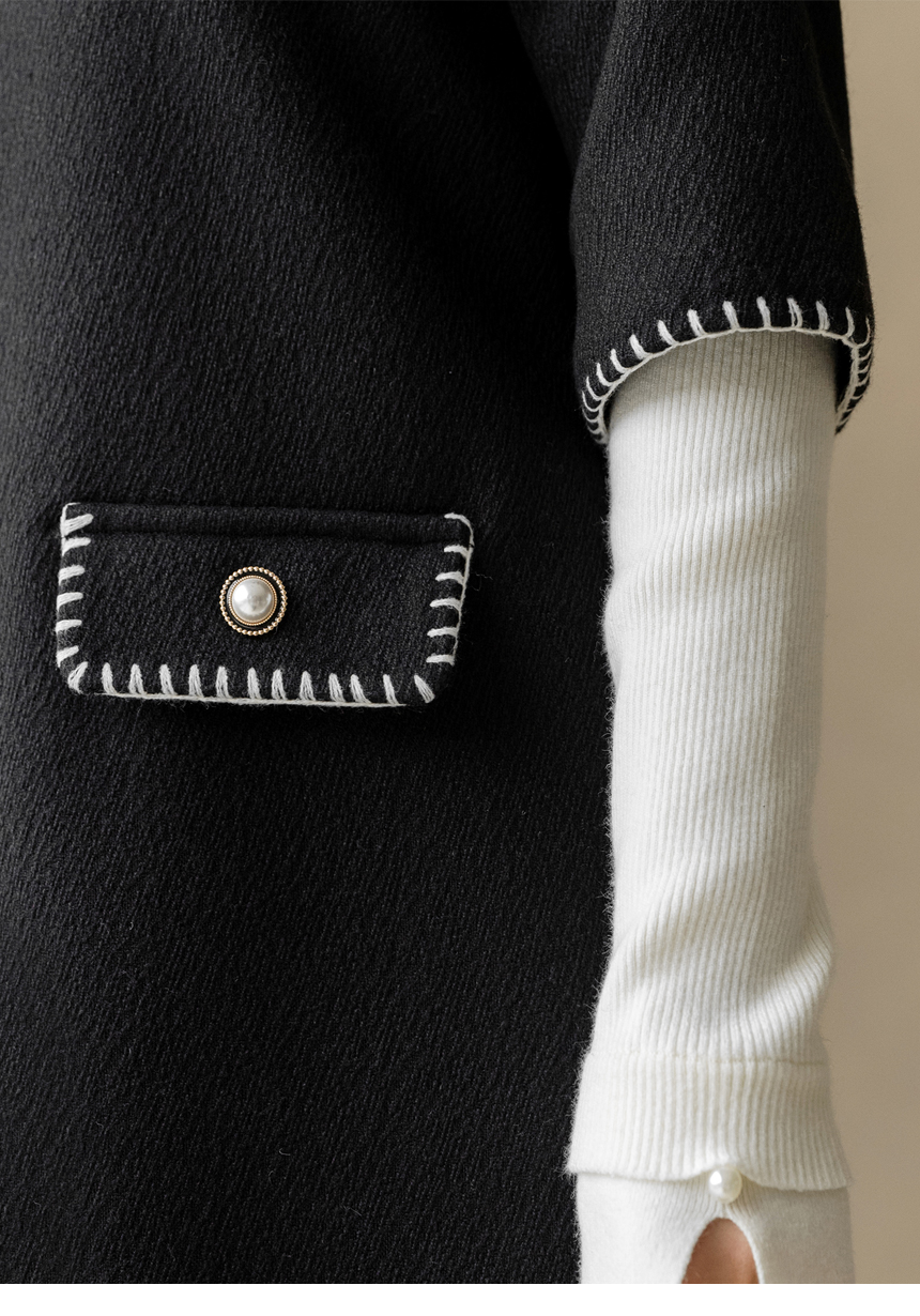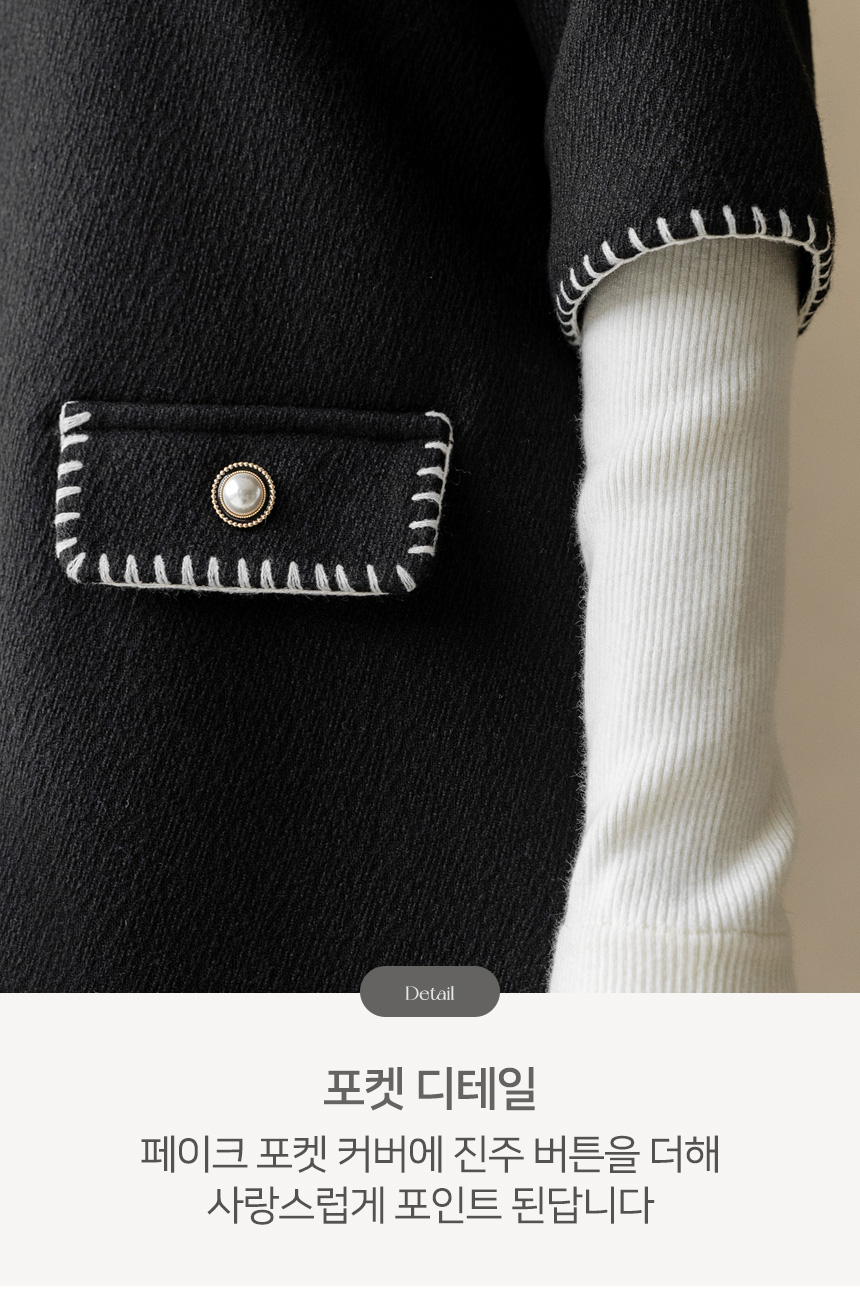 끝단에는 배색 컬러의 굵은 원사로 버튼홀 스티치 디테일을 더해