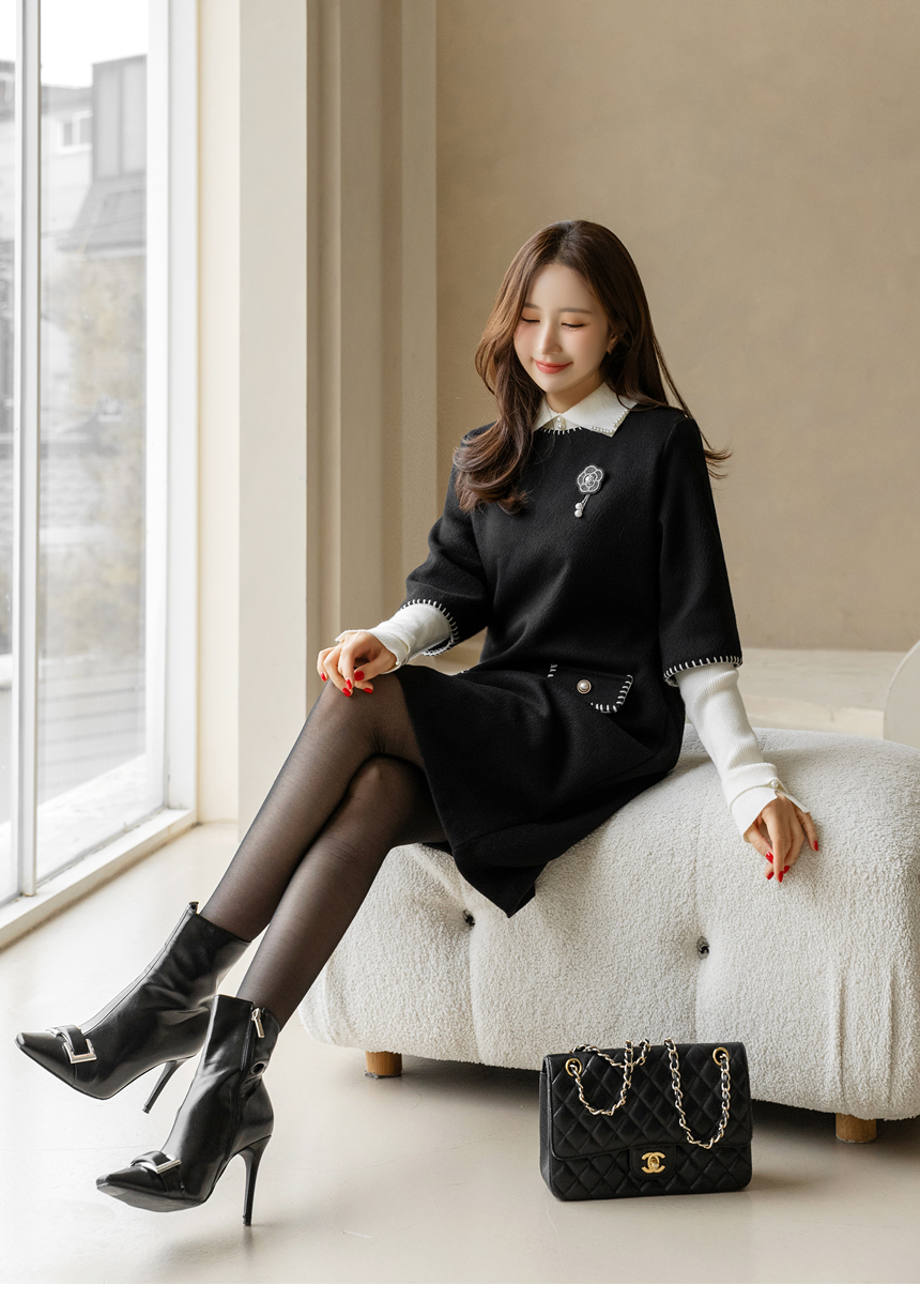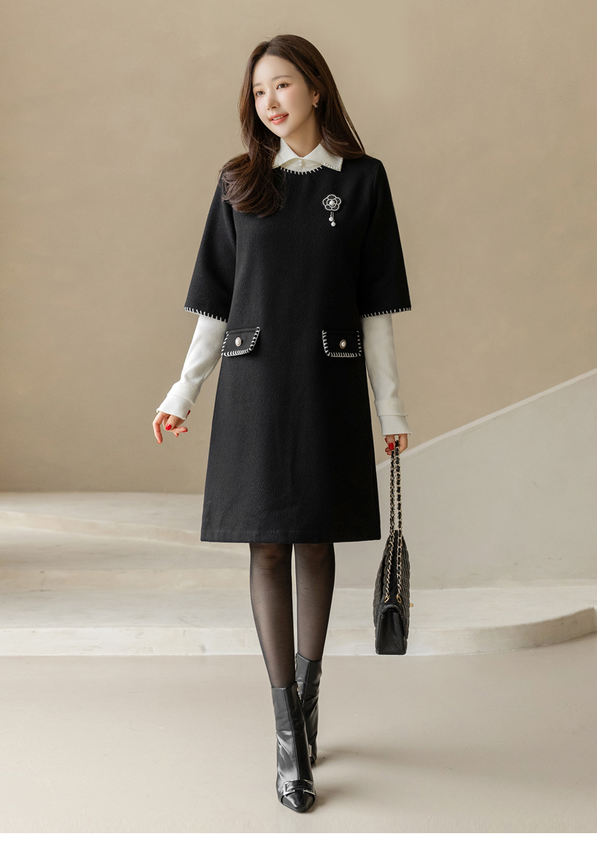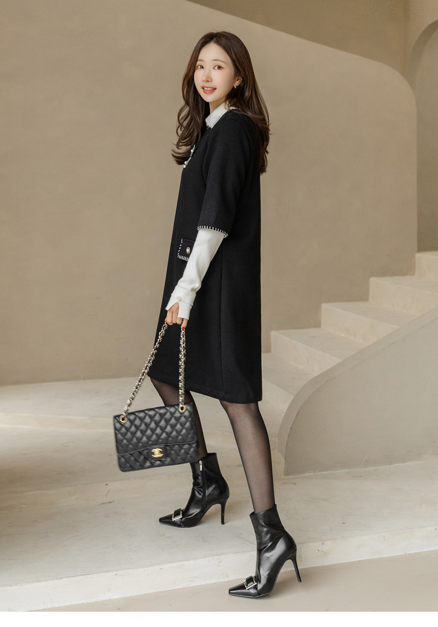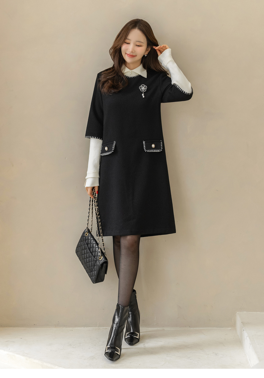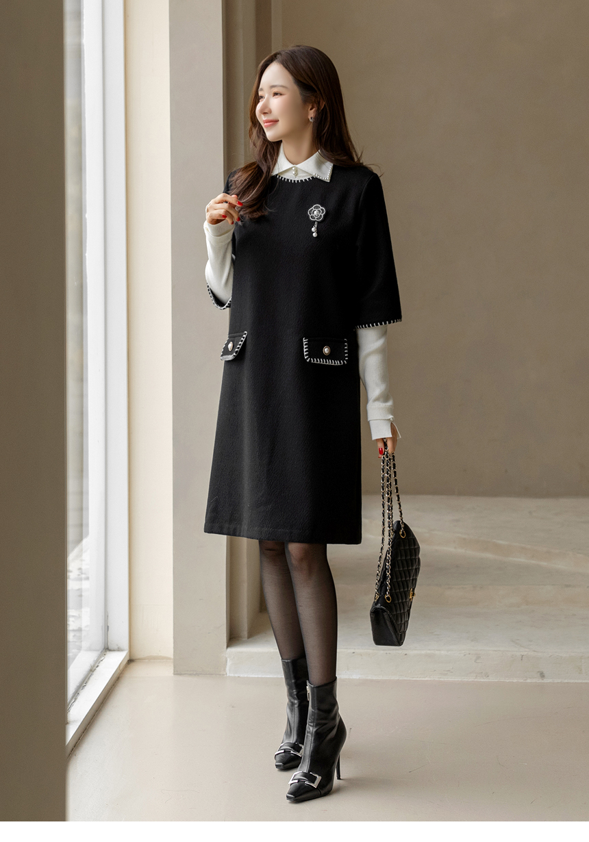 단정한 카라 디자인에 진주 디테일의 우아함을 담아