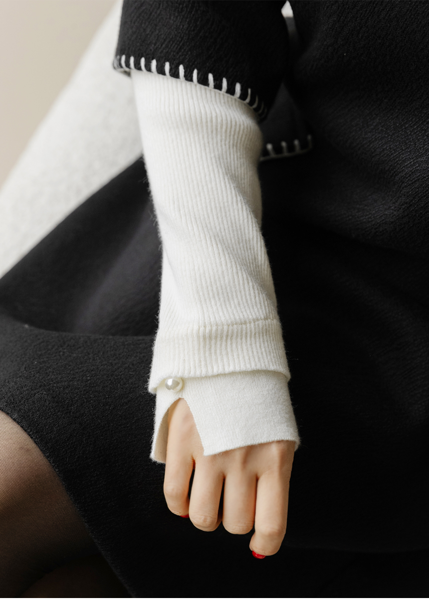 다른 아이템과 레이어드 하면 카라와 진주 장식이