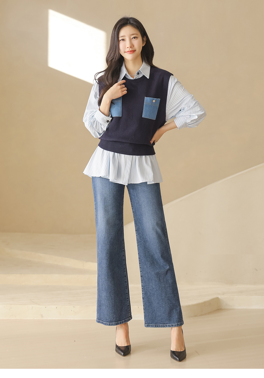 데일리로 편안하게 즐기기 좋은 베이직 와이드 데님 팬츠예요 :)