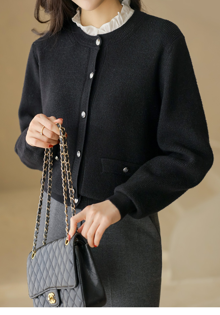 ラメ入り ラウンドネック ニットカーディガン cd44245