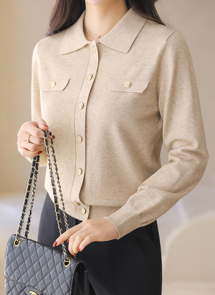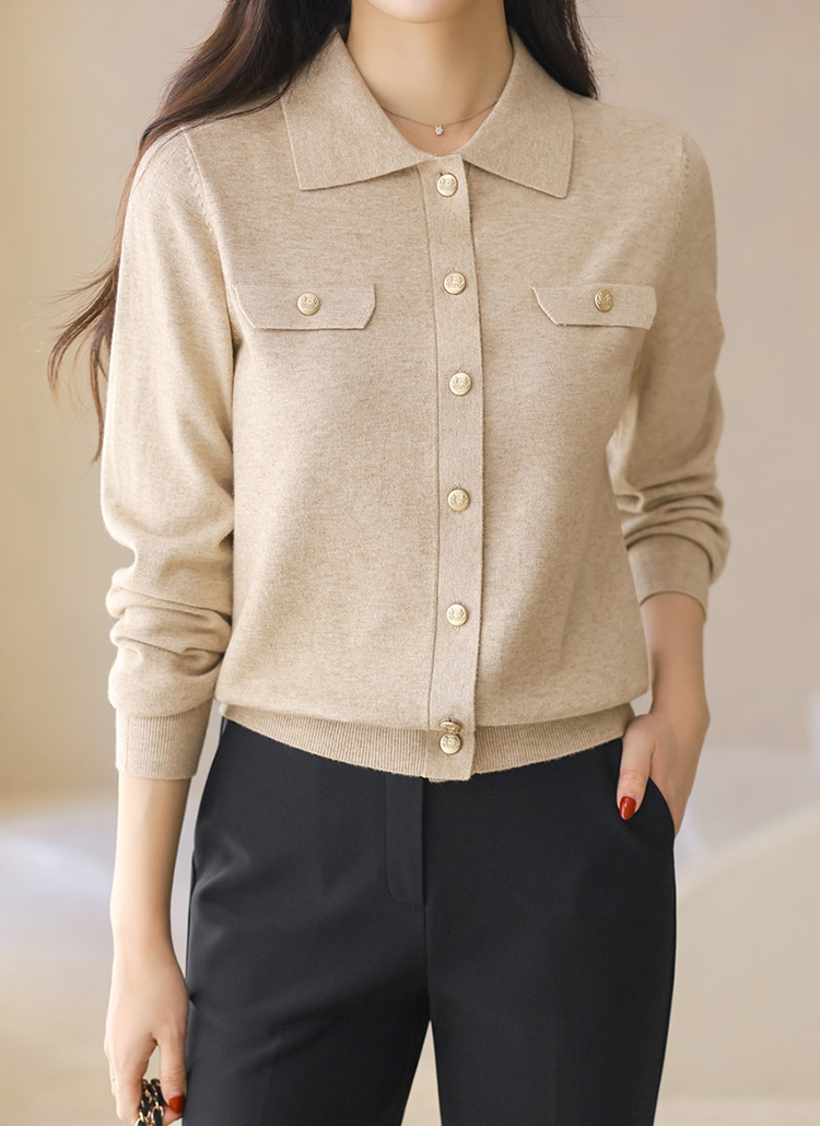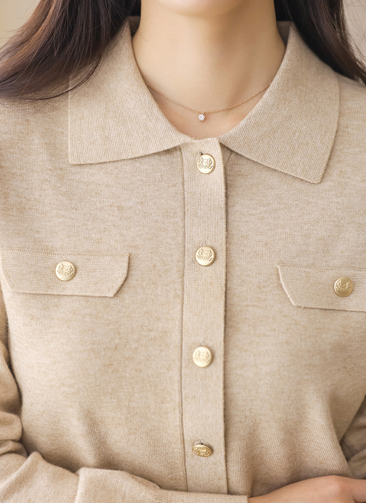 ゴールドボタン 襟付きニットカーディガン cd44260