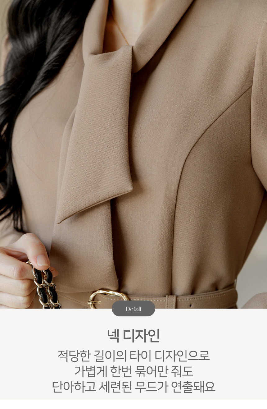 목 부분은 스카프 타이 디자인으로 가볍게 묶어 우아하게~