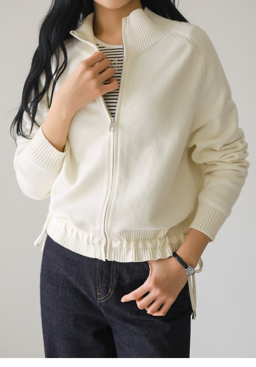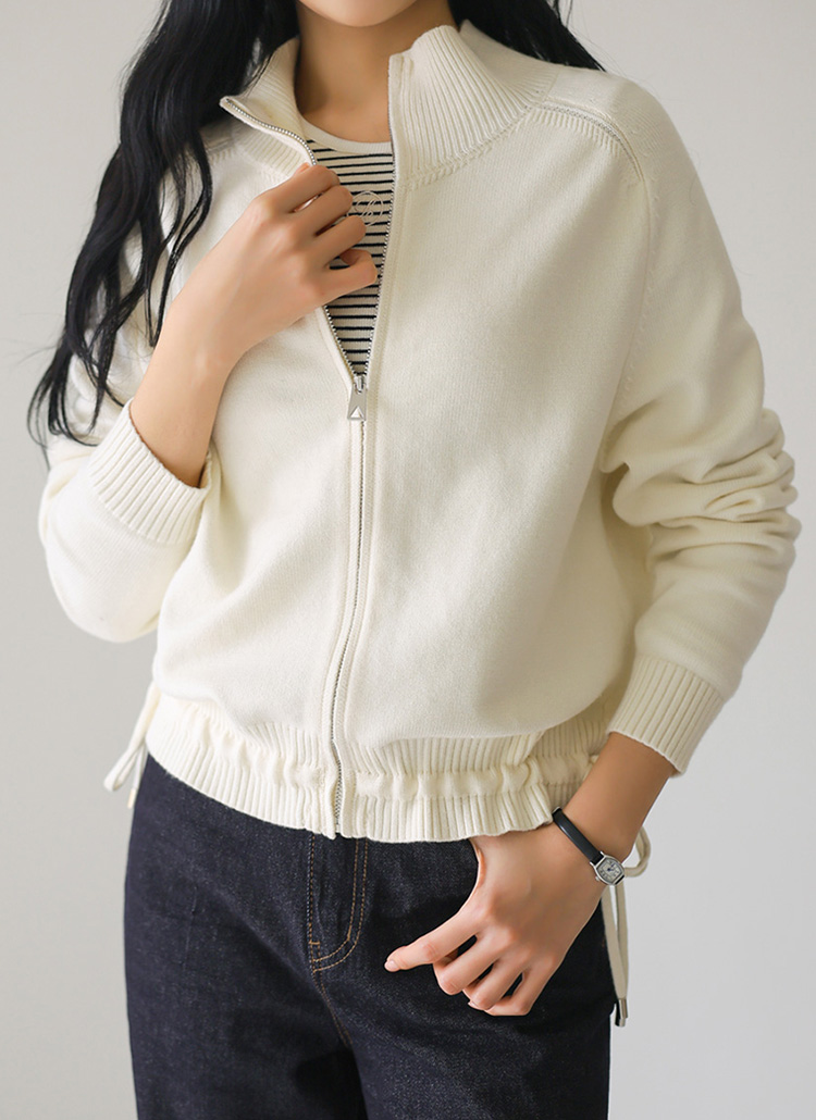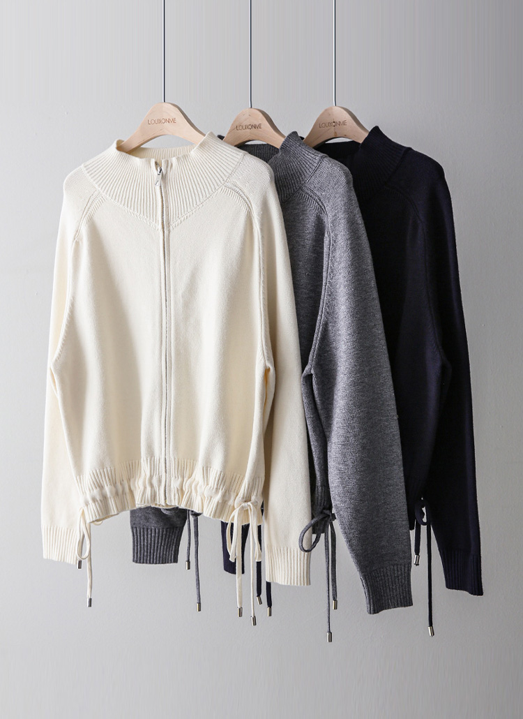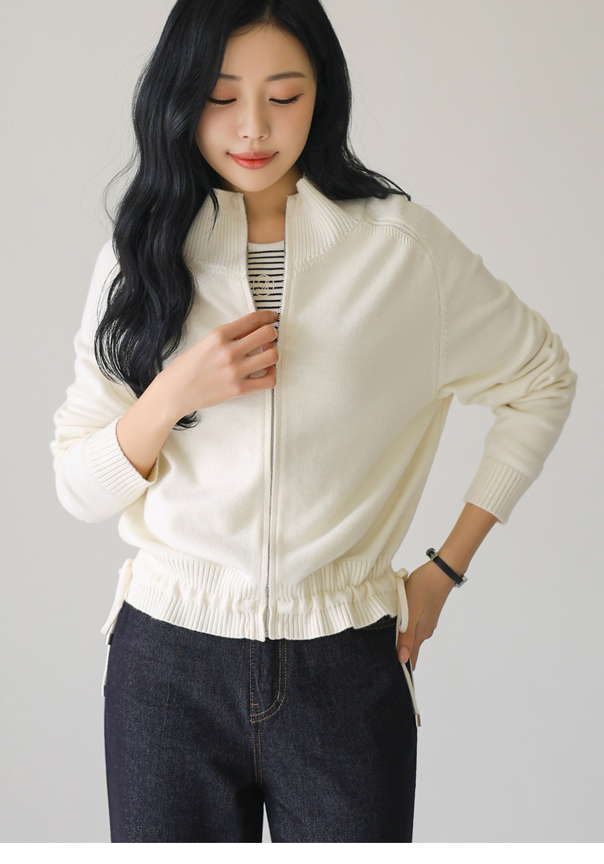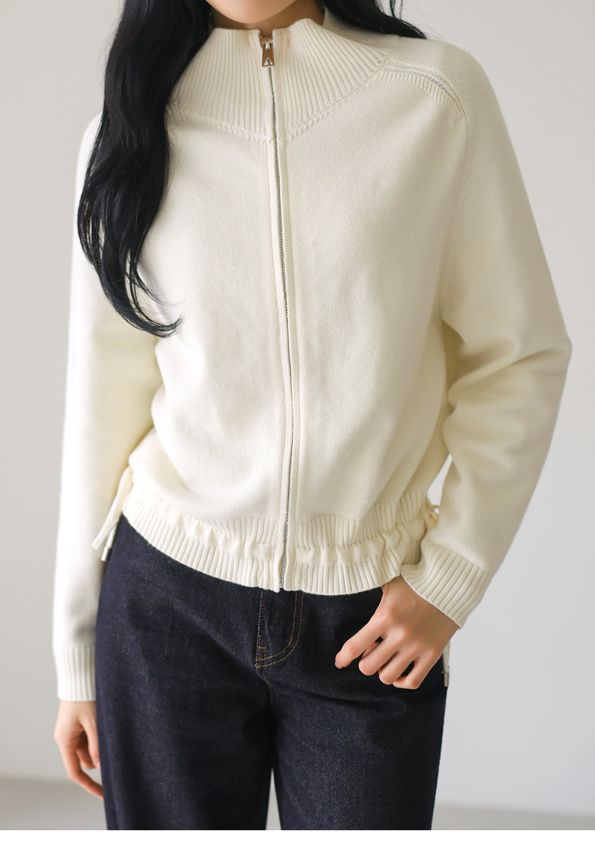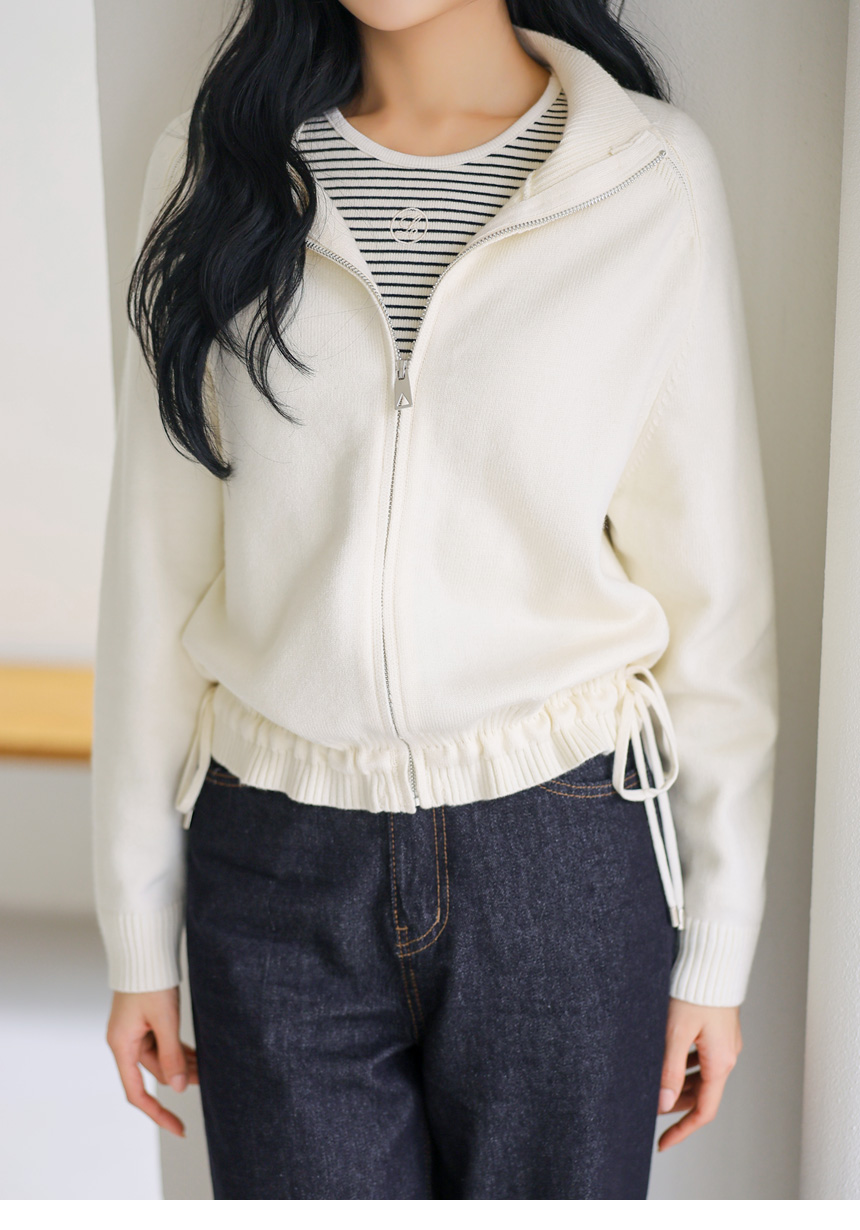 [THE ONME] ウエストドロスト ジップアップ ニットカーディガン cd44293