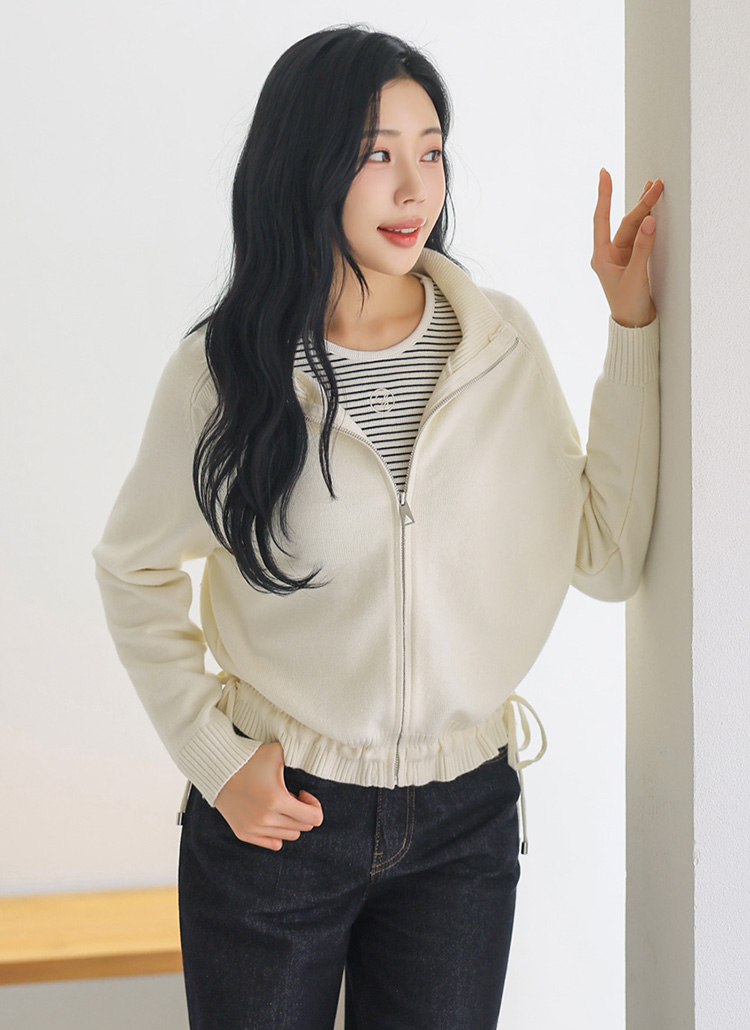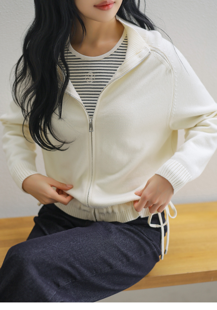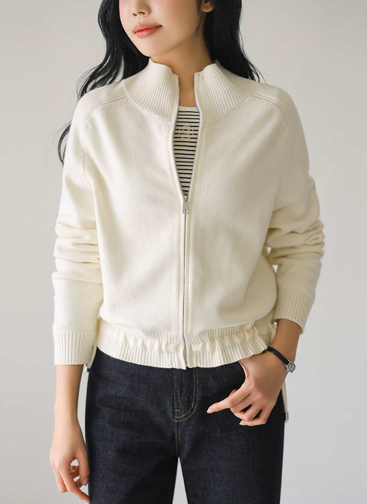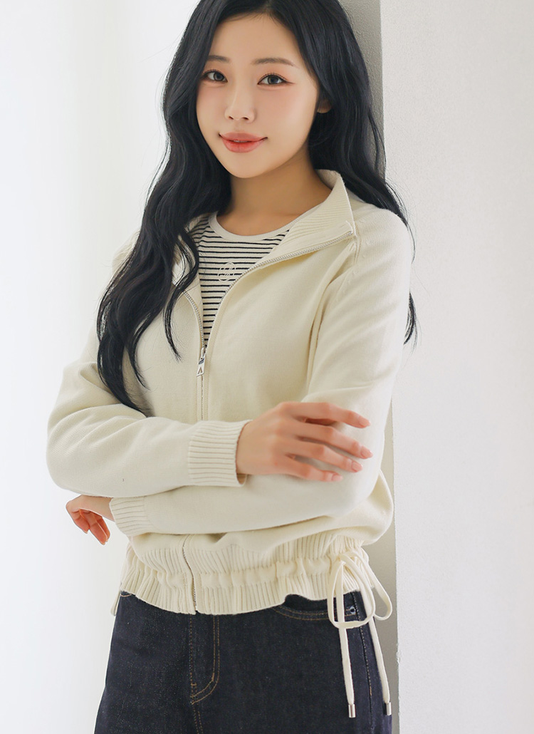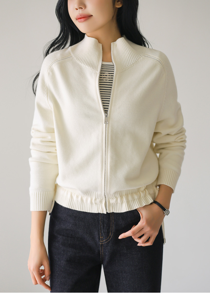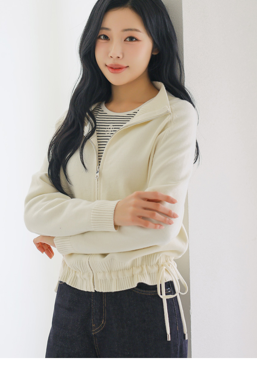 [THE ONME] ウエストドロスト ジップアップ ニットカーディガン cd44293