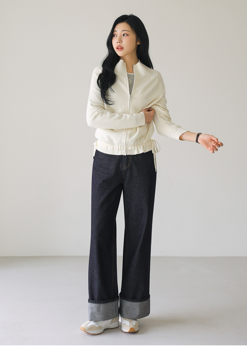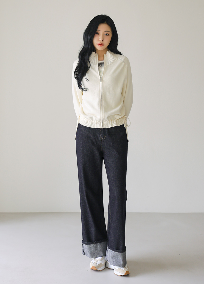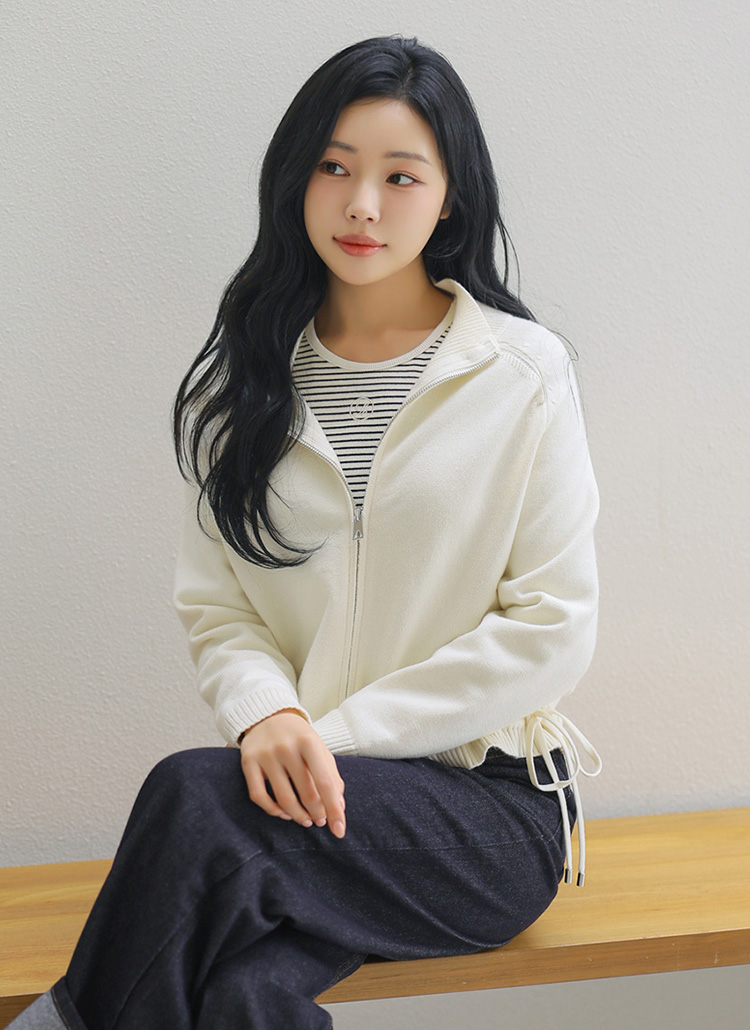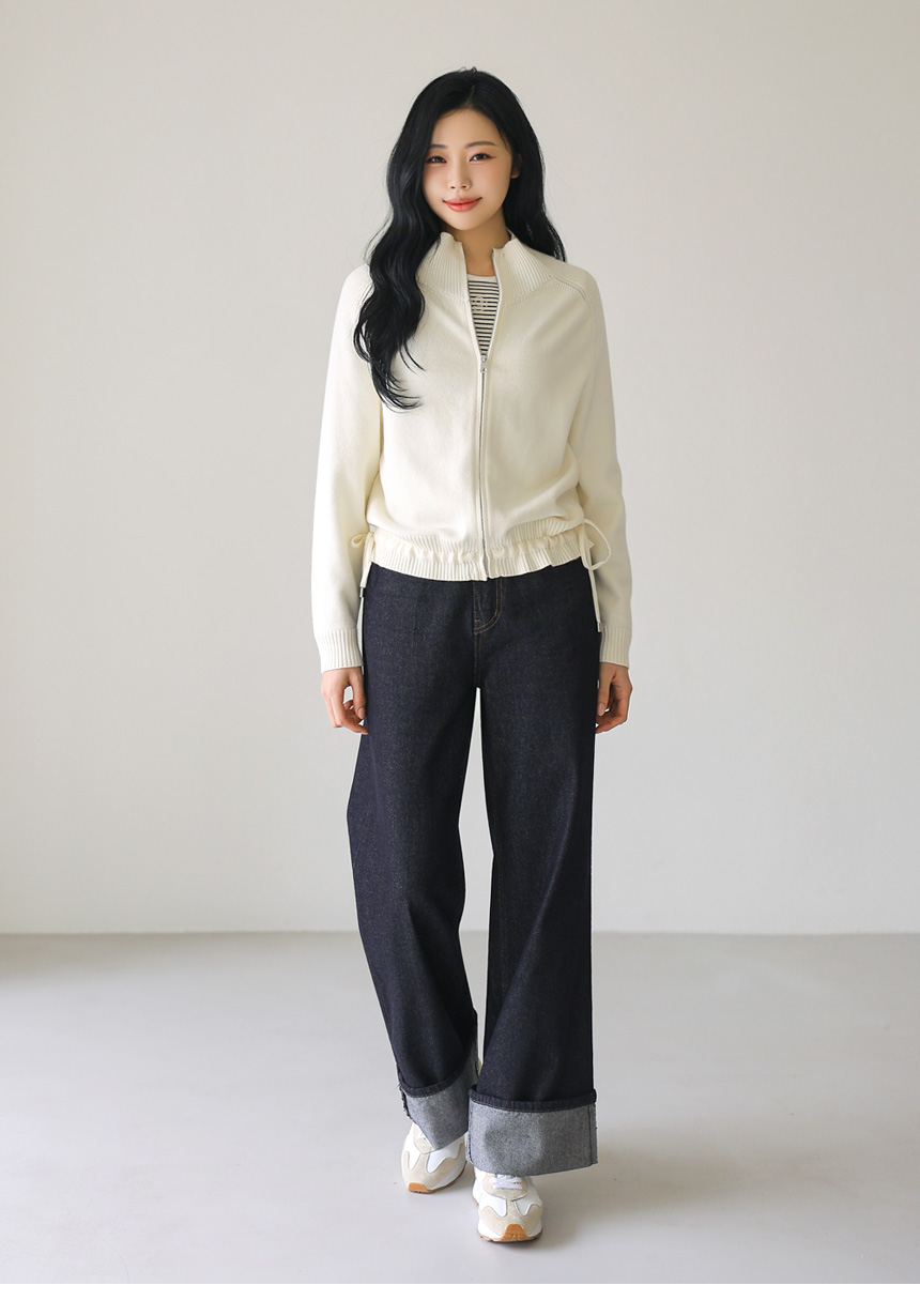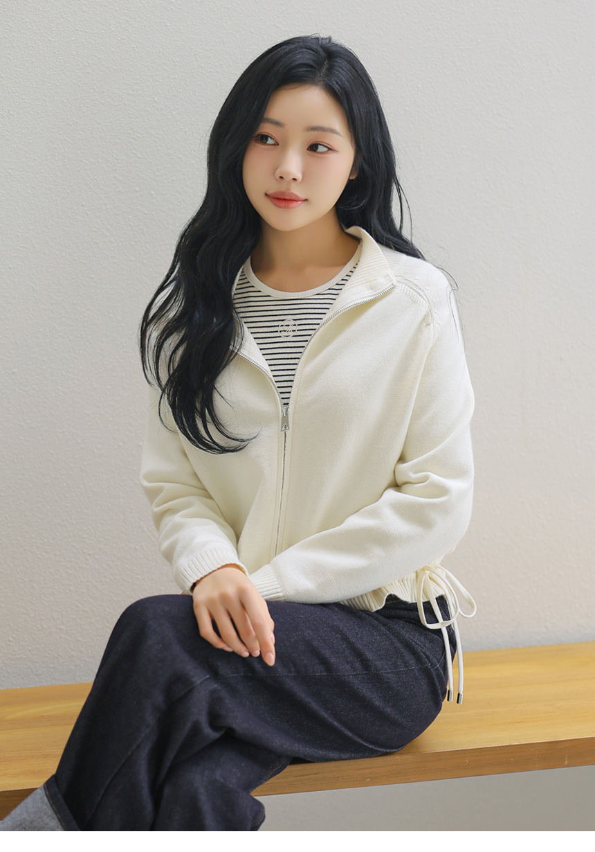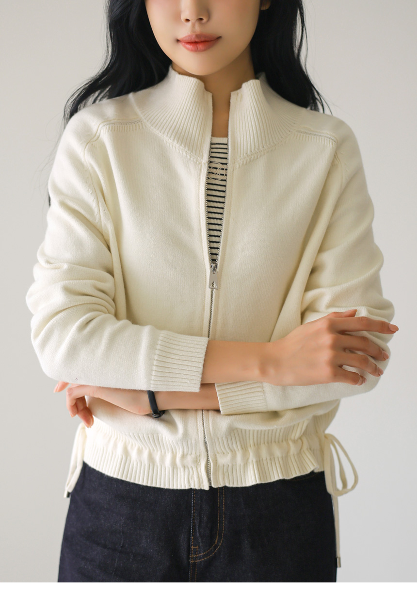 [THE ONME] ウエストドロスト ジップアップ ニットカーディガン cd44293