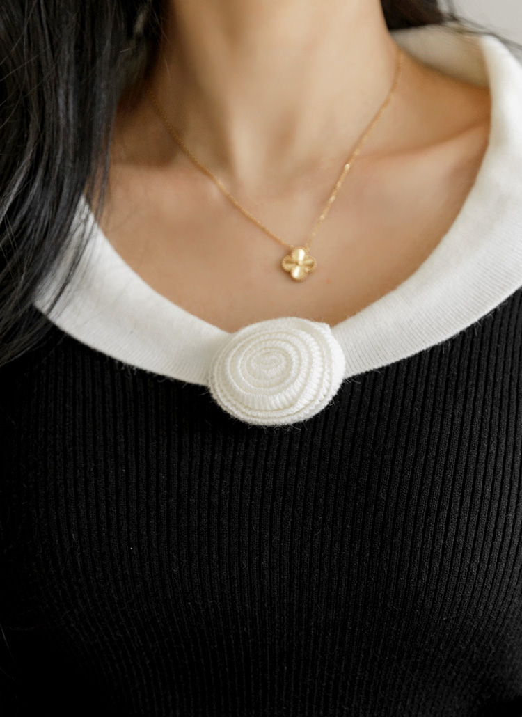카라 배색과 로즈 코사지 장식이 어우러져