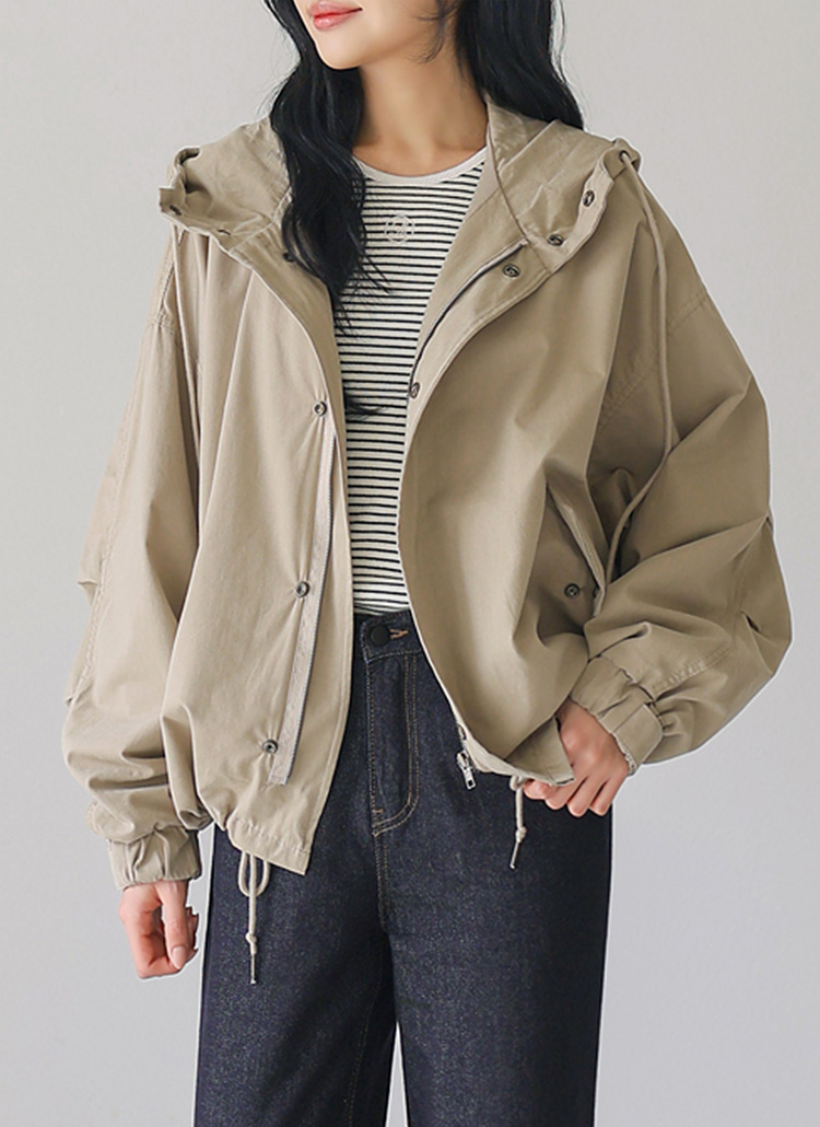 밑단과 후드 스트링으로 취향에 맞게 핏 조절이 가능합니다