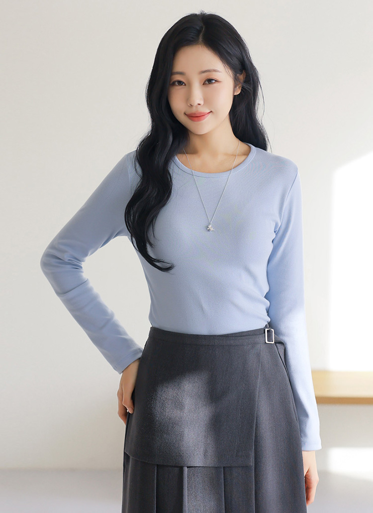 베이직한 라운드넥 디자인으로 깔끔한 실루엣을 연출해주며